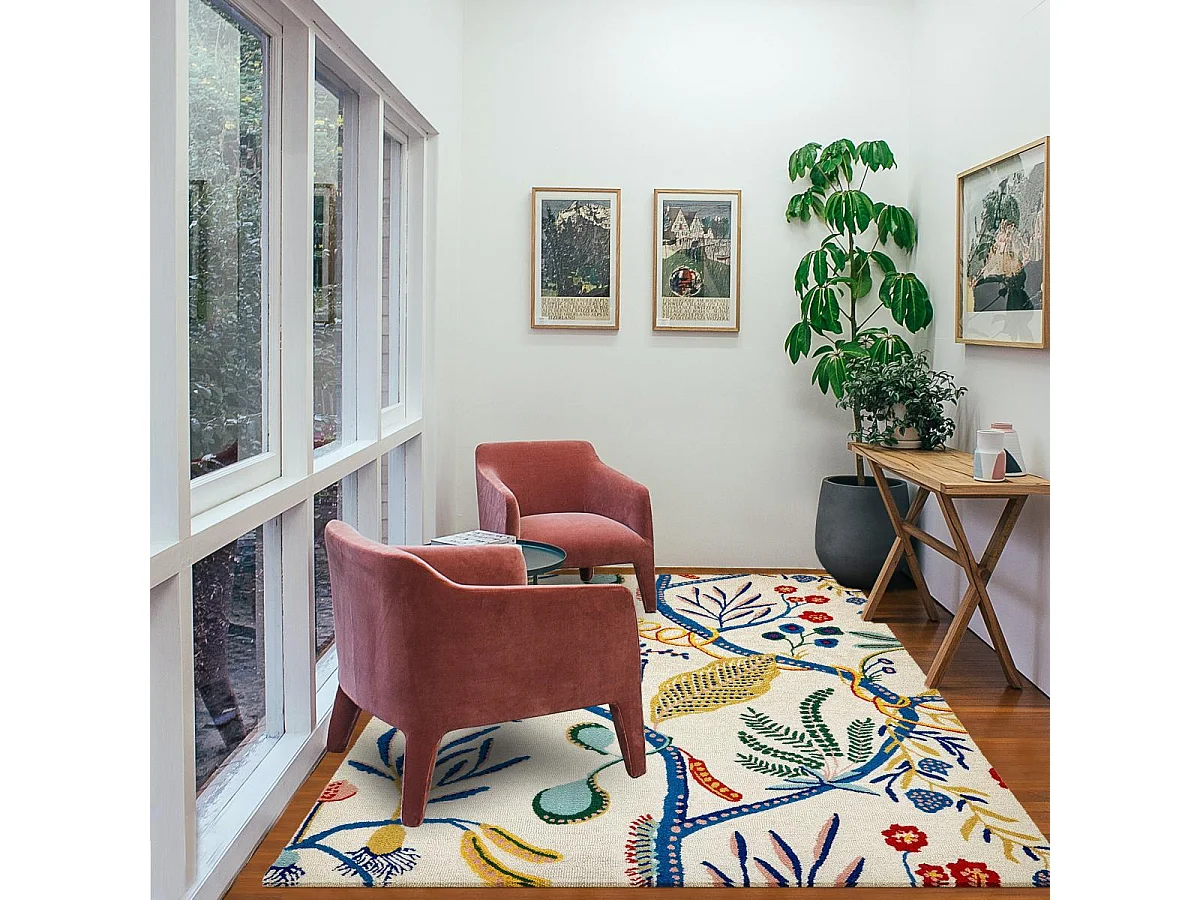tapis grand salon 250x350 fait à la main en laine multicolore motif floral