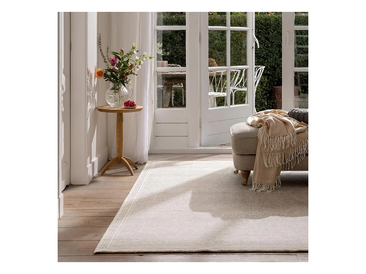 tapis salle à manger 170x240 fait main en coton beige rectangle motif floral
