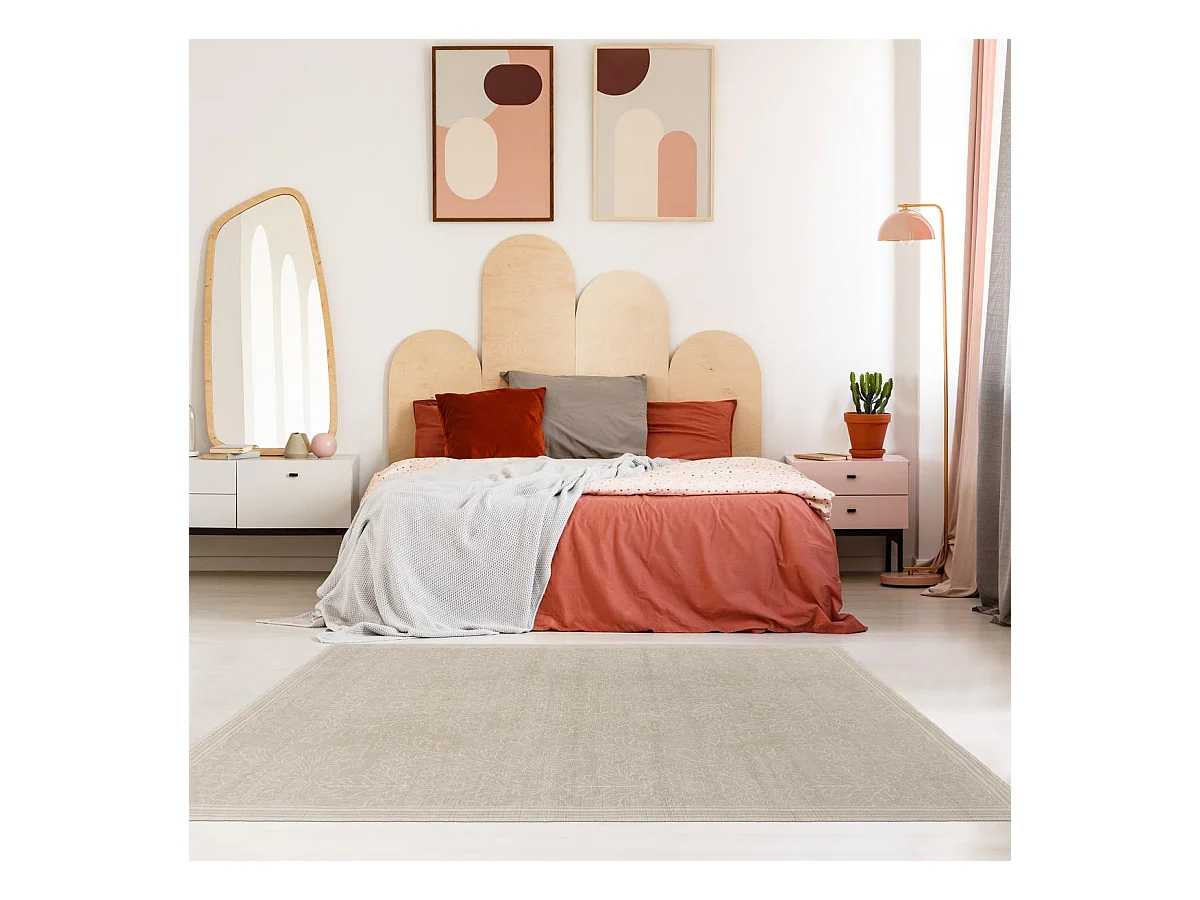 tapis salon 200x280 fait main en coton beige rectangle motif floral SILEST