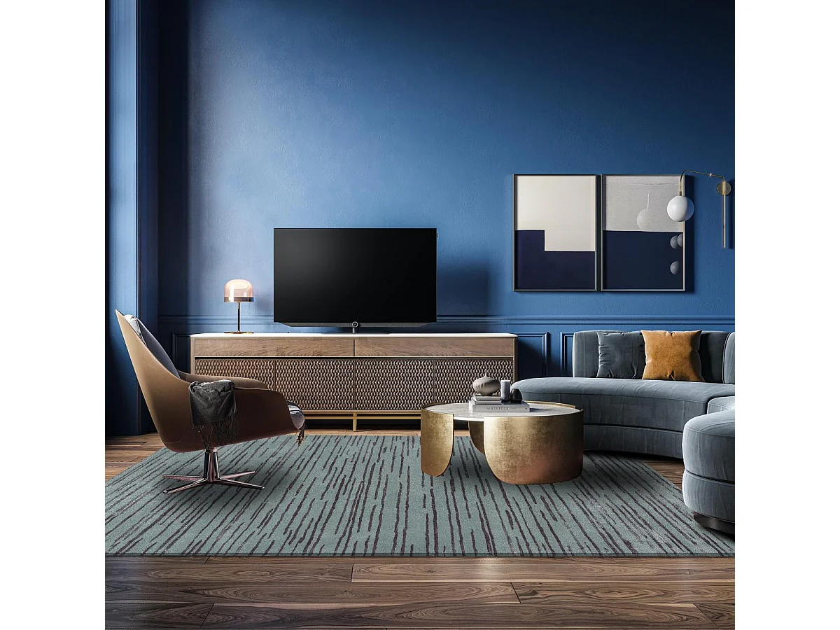 tapis grand salon 250x350 fait à la main en laine gris motif faux uni