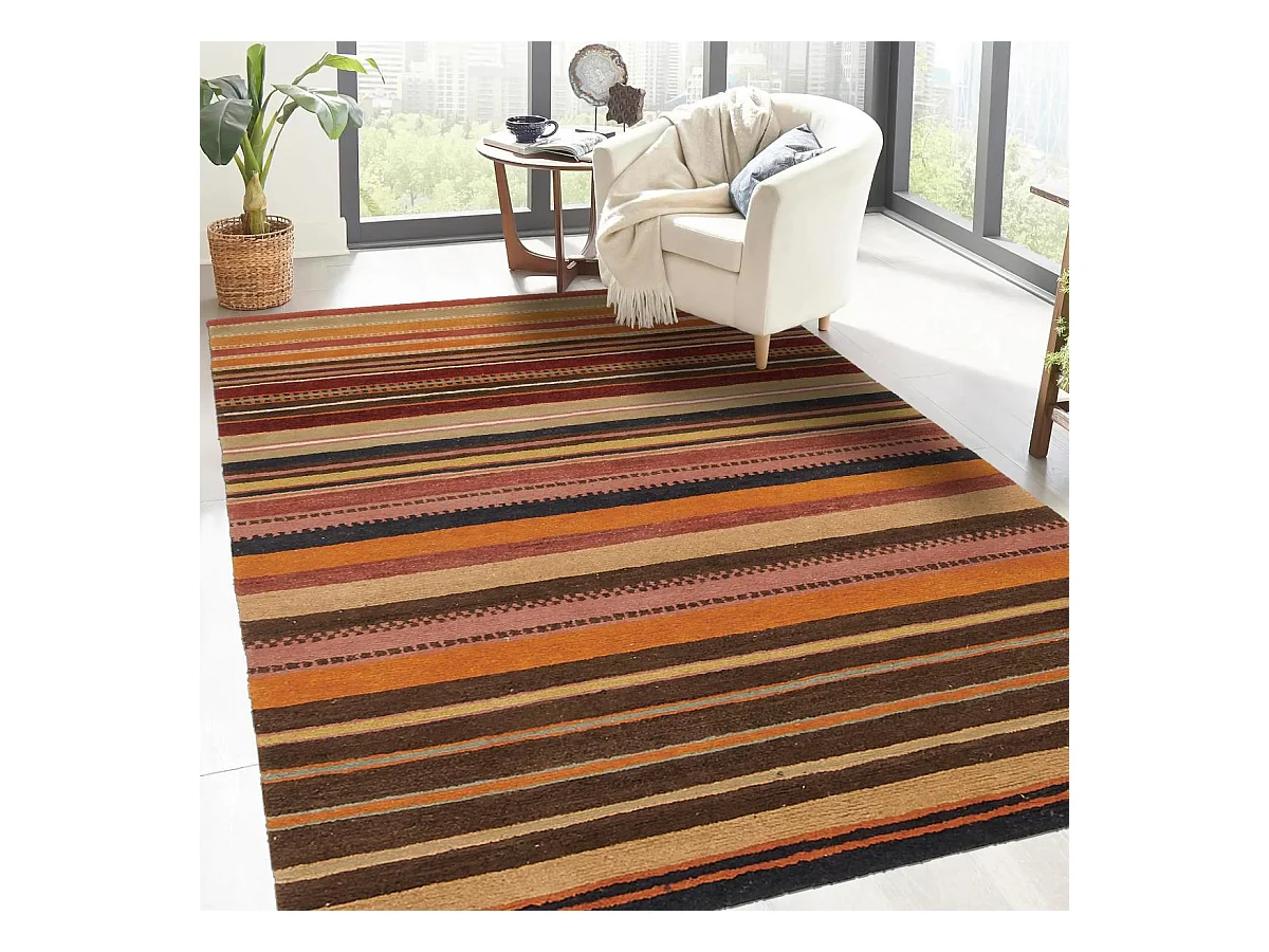tapis salon 170x240 fait main en laine beige et marron motif géométrique