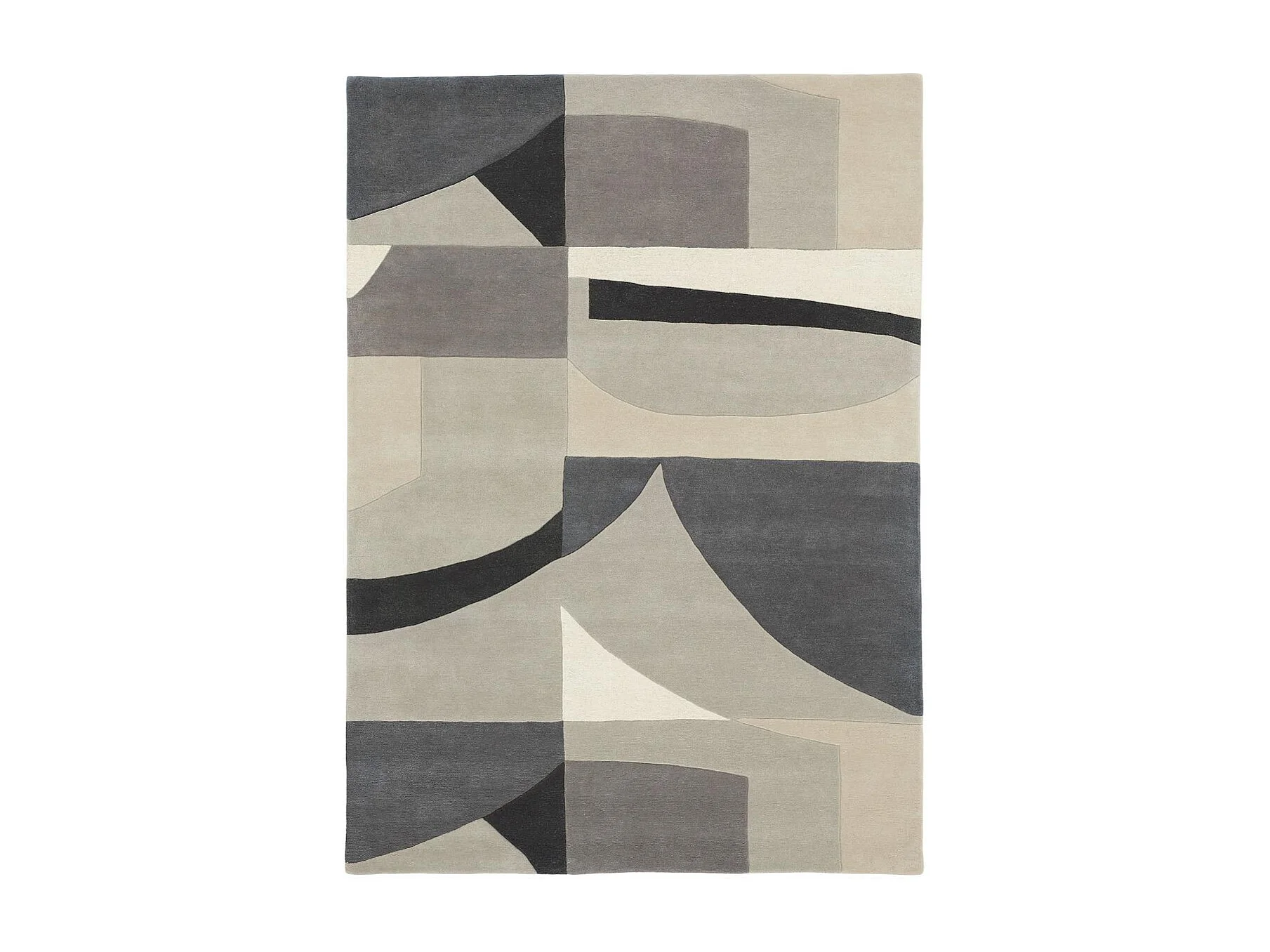 tapis chambre 170x240 fait à la main en laine gris rectangle motif géométrique