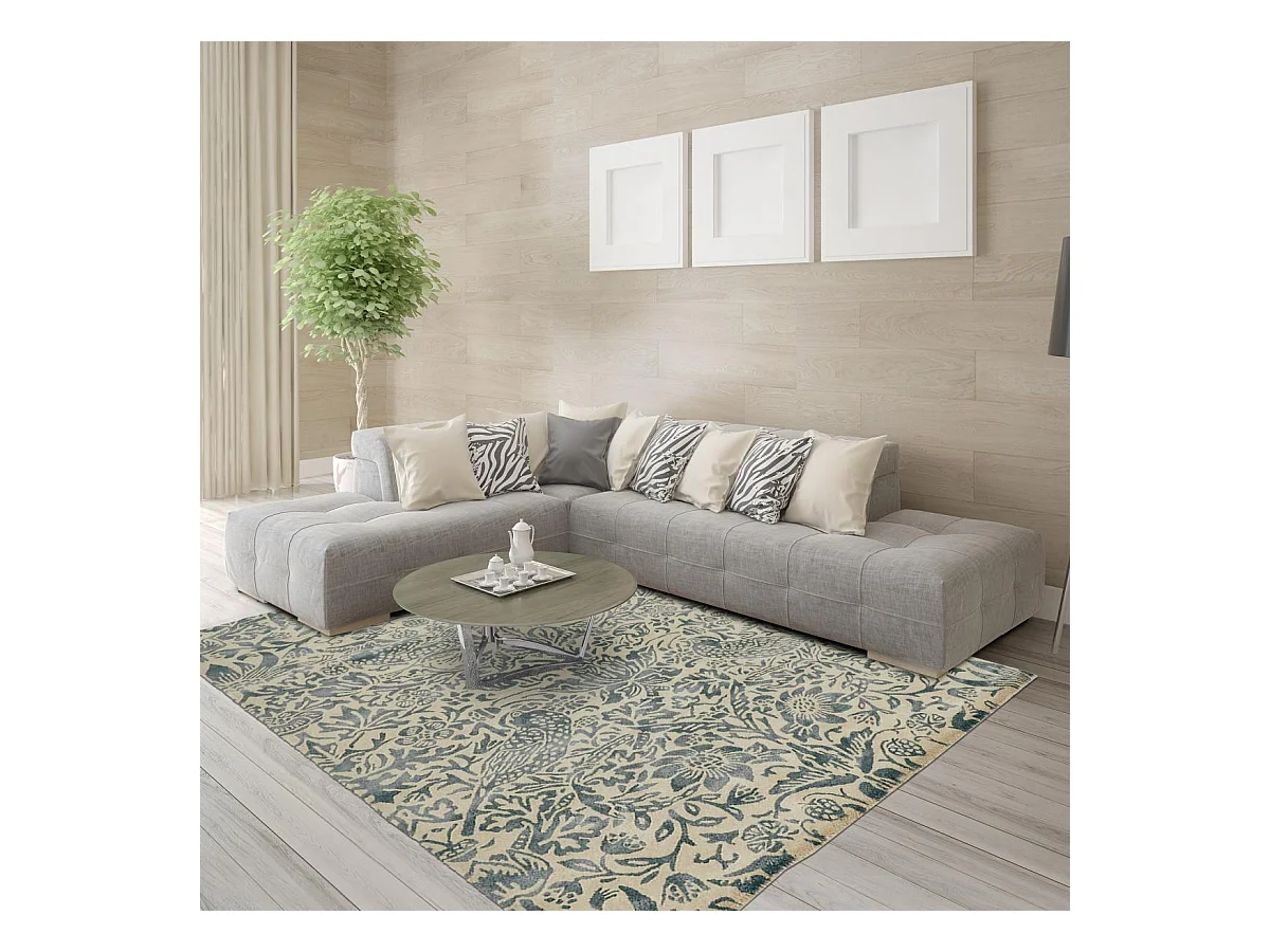 tapis chambre 170x240 fait à la main en laine gris et taupe motif floral