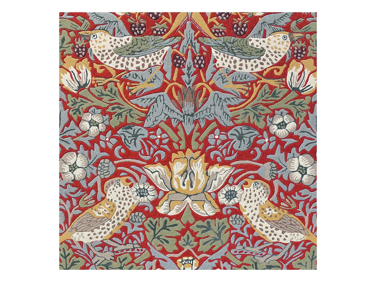 tapis chambre 170x240 fait à la main en laine rouge et bleu motif floral