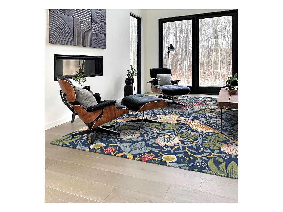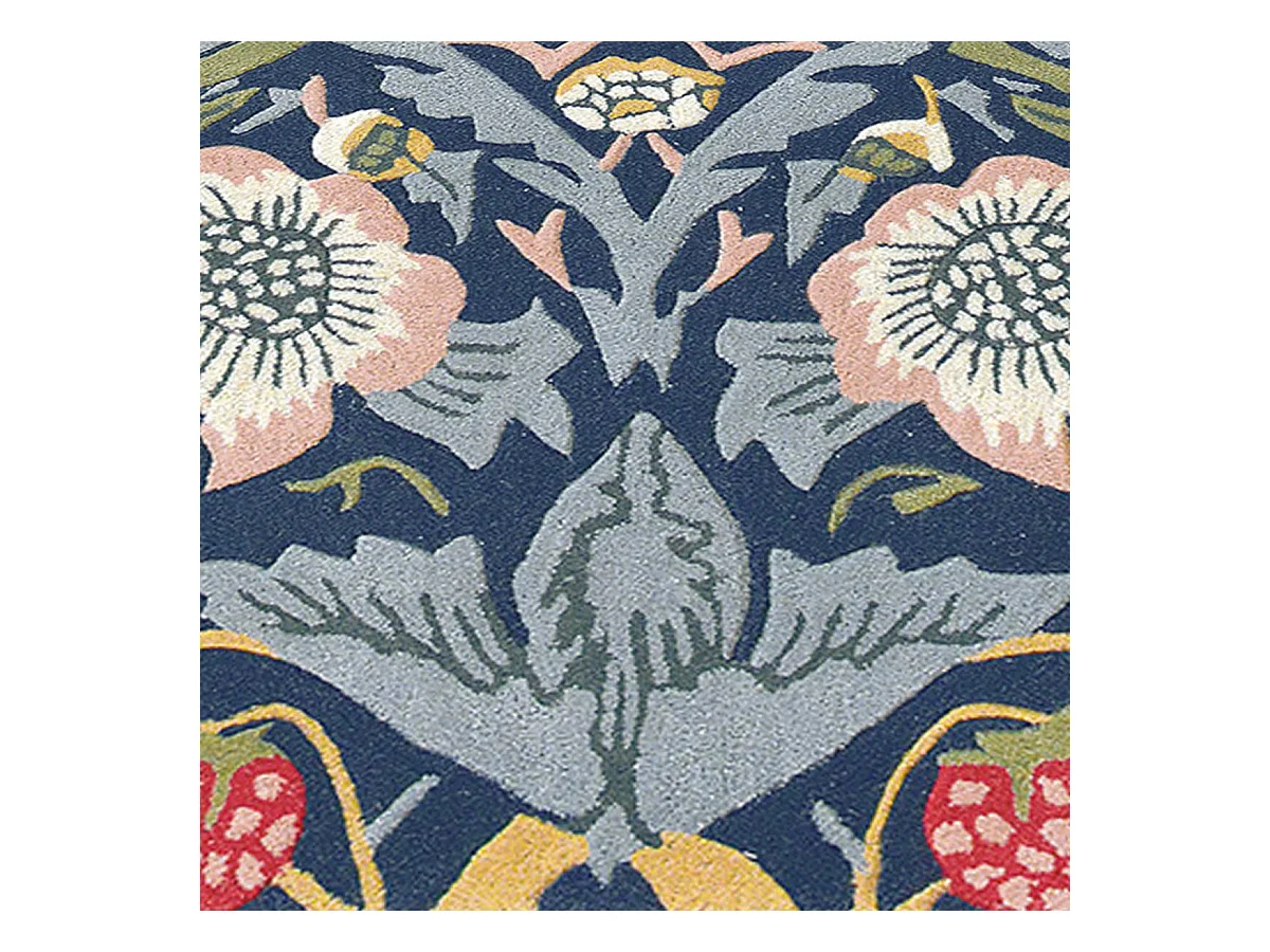 tapis salon 200x280 fait à la main en laine indigo rectangle motif floral