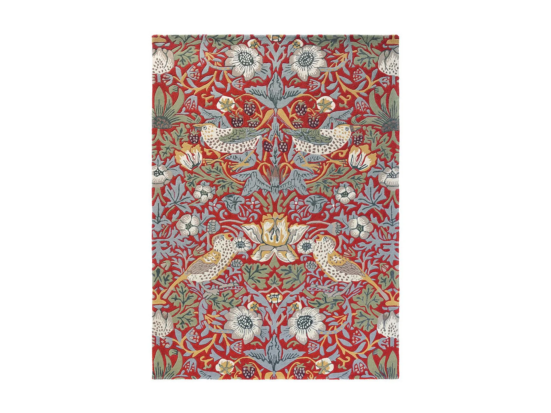 tapis salon 200x280 fait à la main en laine rouge et bleu motif floral