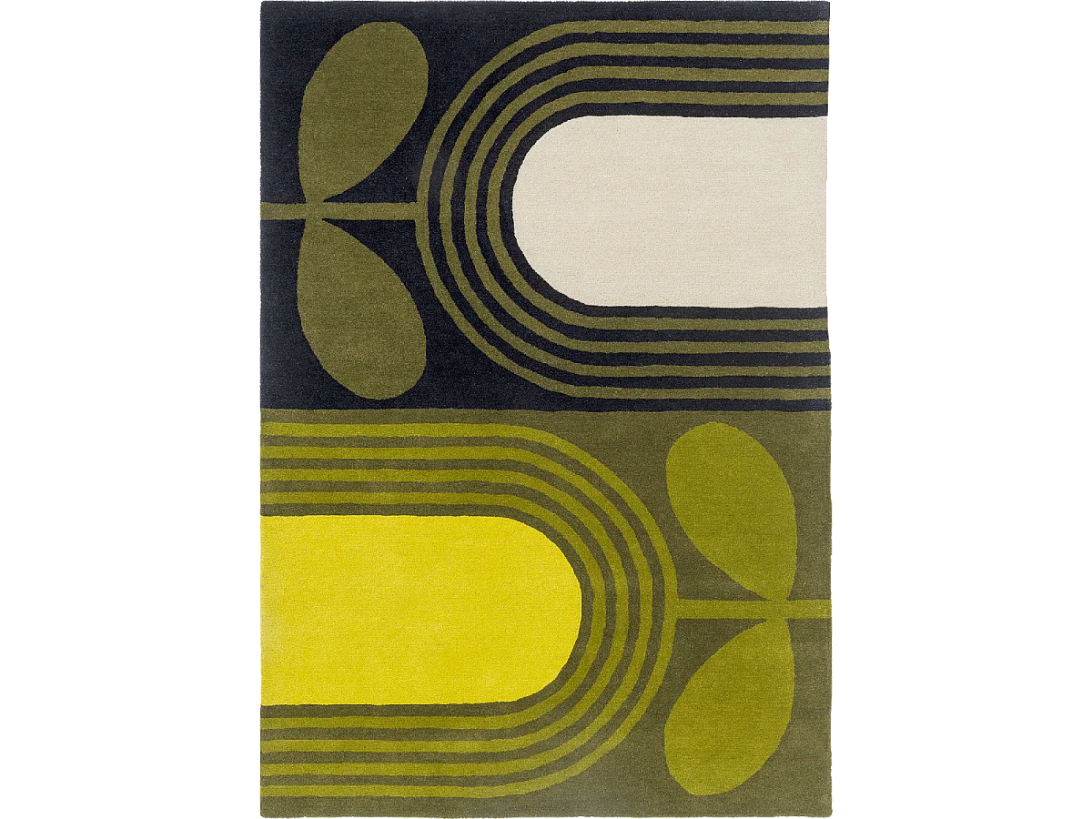 tapis entrée 120x180 fait main en laine vert et jaune rectangle motif floral