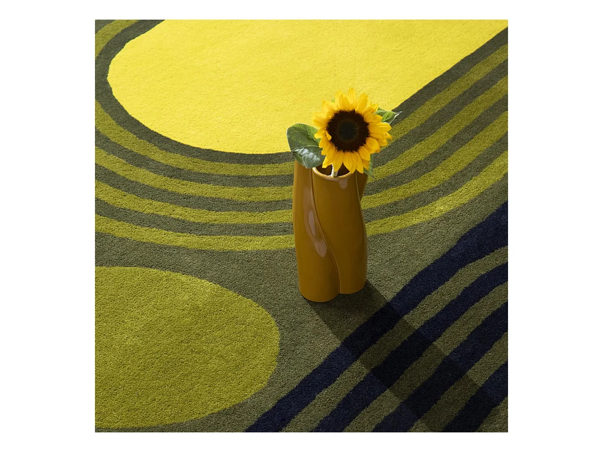tapis chambre 160x230 fait main en laine vert et jaune rectangle motif floral