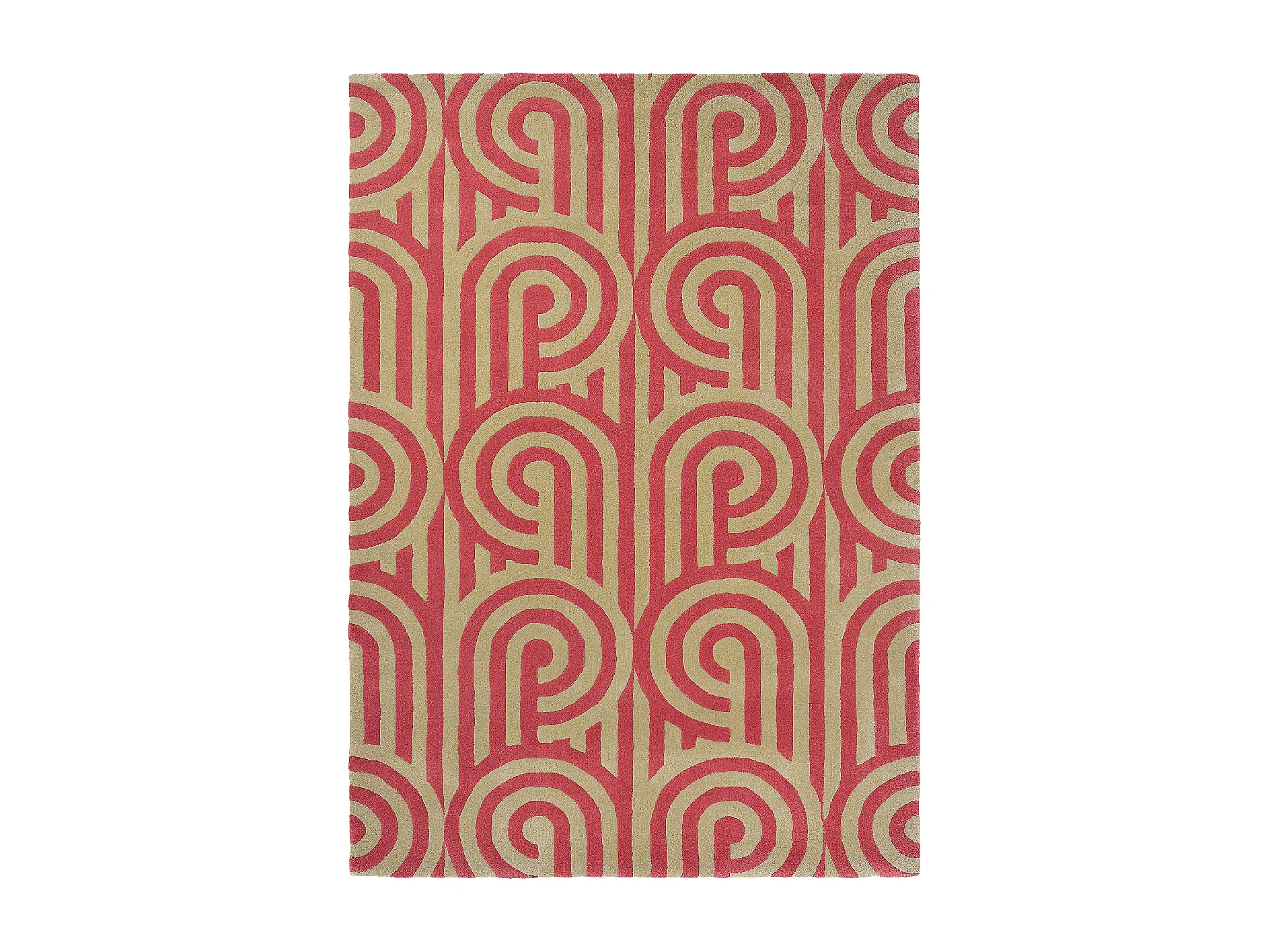 tapis bibliothèque 200x280 fait à la main en laine rouge motif seventies
