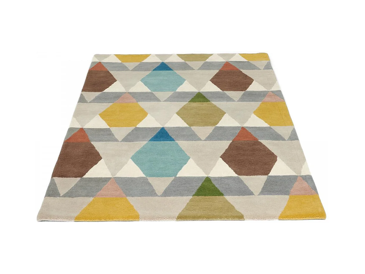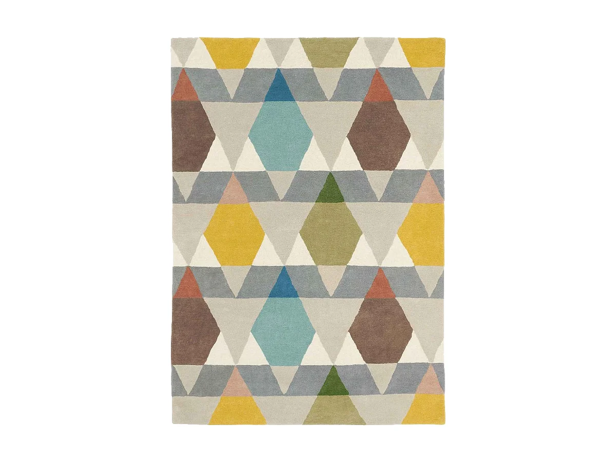 tapis entrée 140x200 tissé en laine gris et jaune rectangle motif géométrique