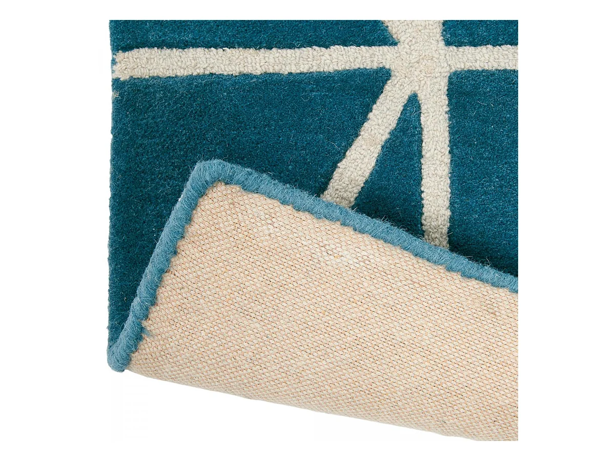 tapis salle de jeux 160x230 fait à la main en laine bleu rectangle motif abstrait
