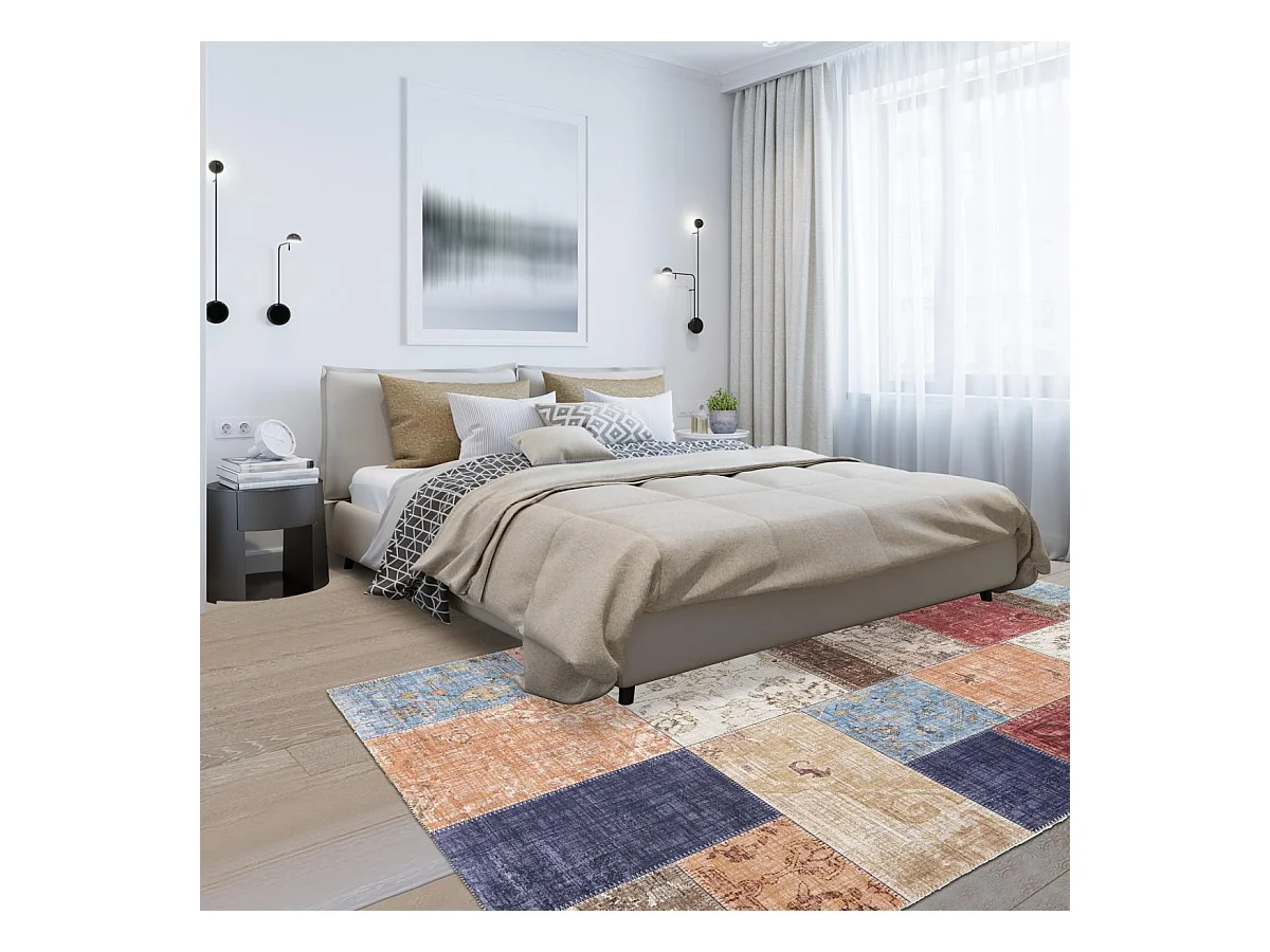 tapis chambre 150x230 tissé bleu et rouge rectangle motif ethnique NOBASTA