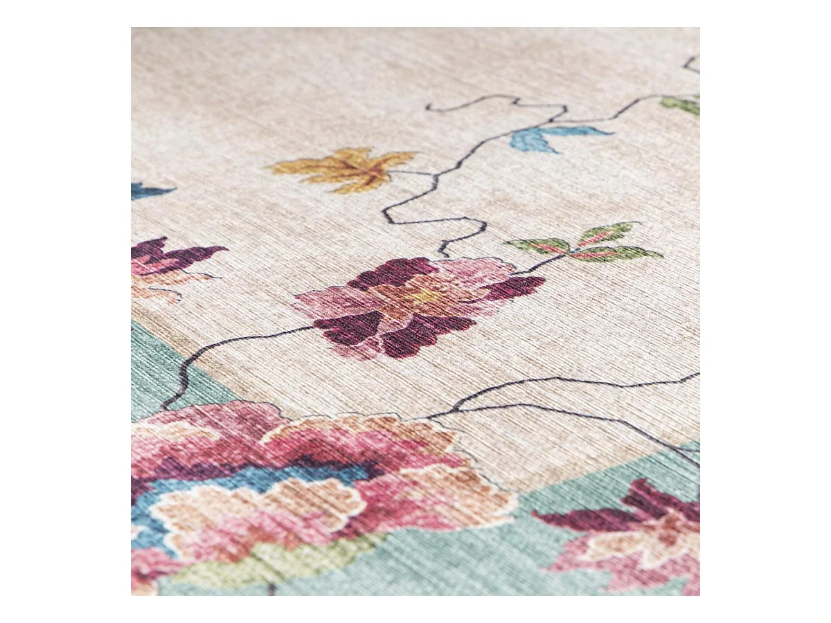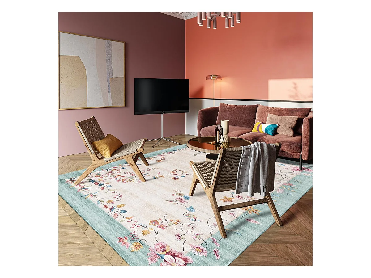 tapis grand salon 200x290 tissé rose et bleu rectangle motif floral VIVACE 7