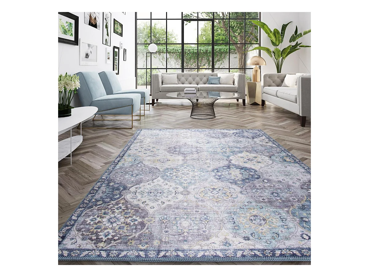 tapis grand salon 200x290 tissé gris clair et gris foncé motif ethnique