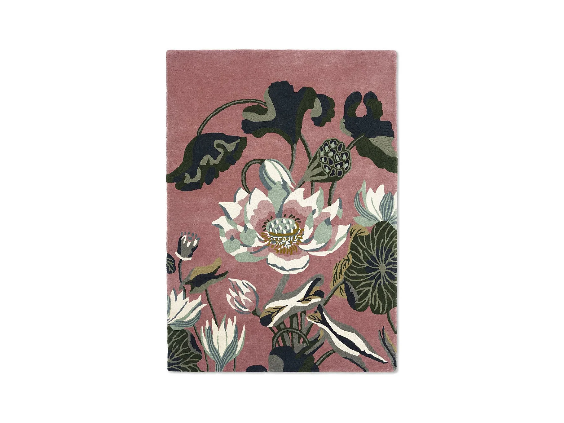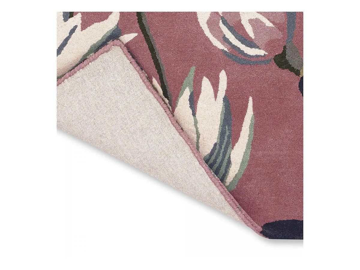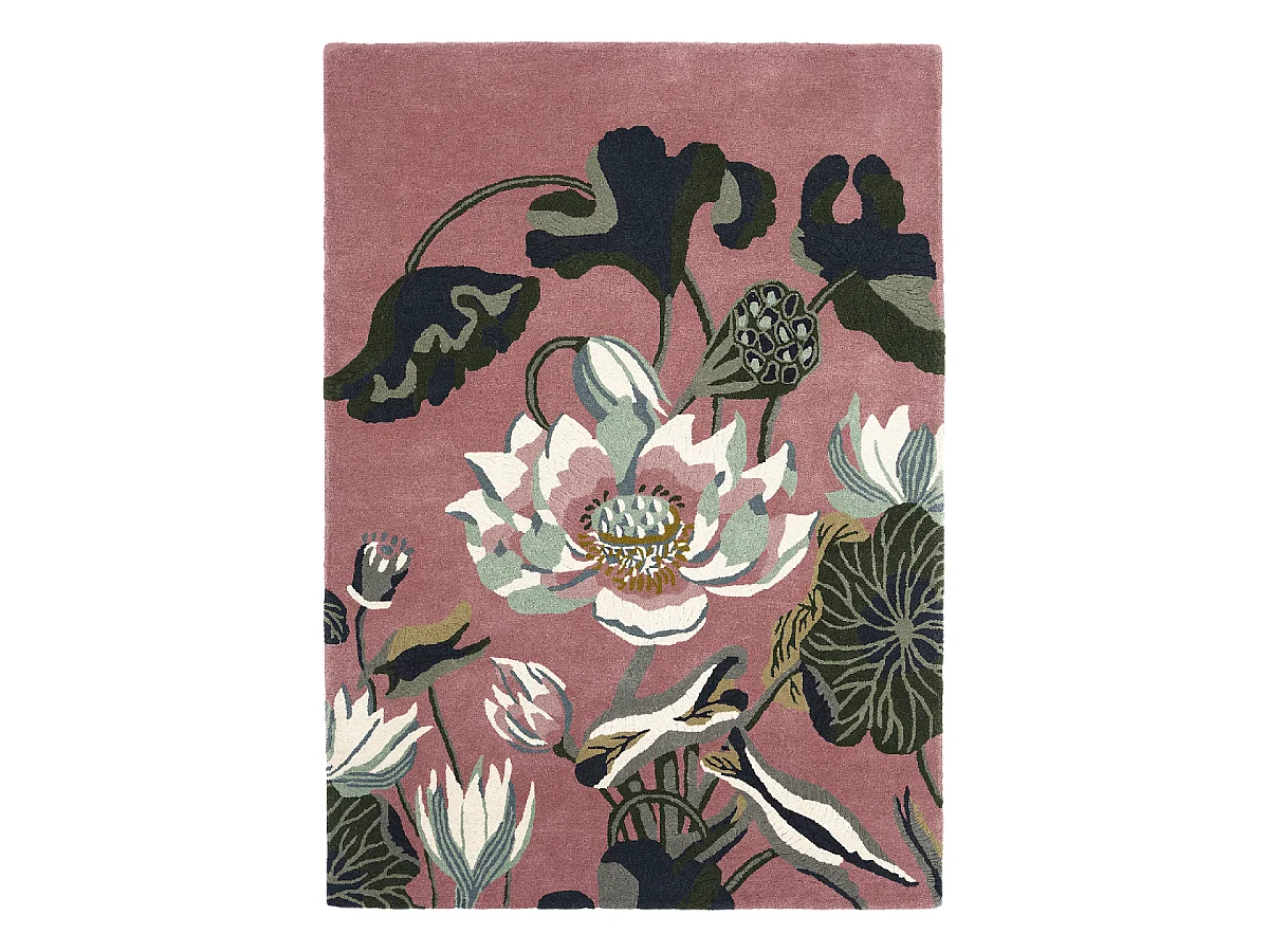 tapis salon 200x280 fait à la main en laine rose et vert motif floral