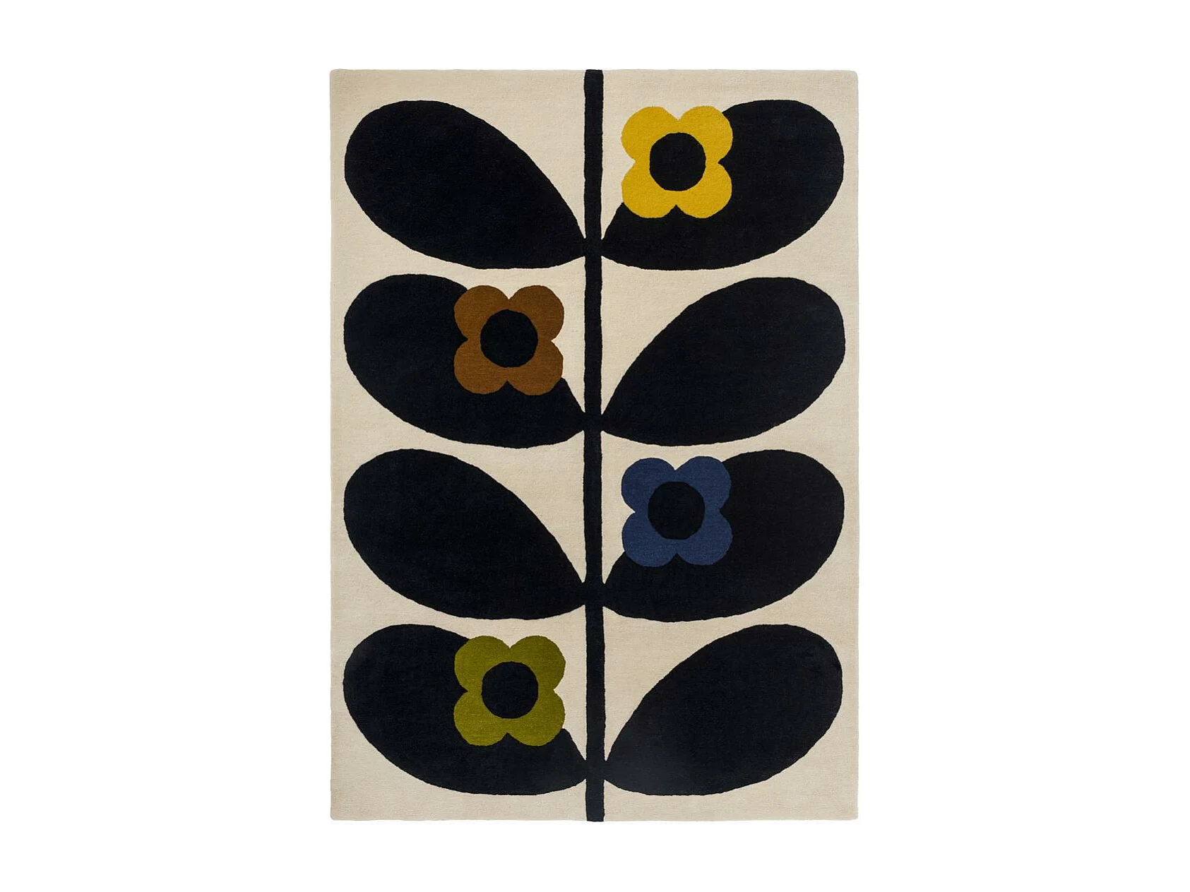 tapis entrée 120x180 fait main en laine noir et jaune rectangle motif floral