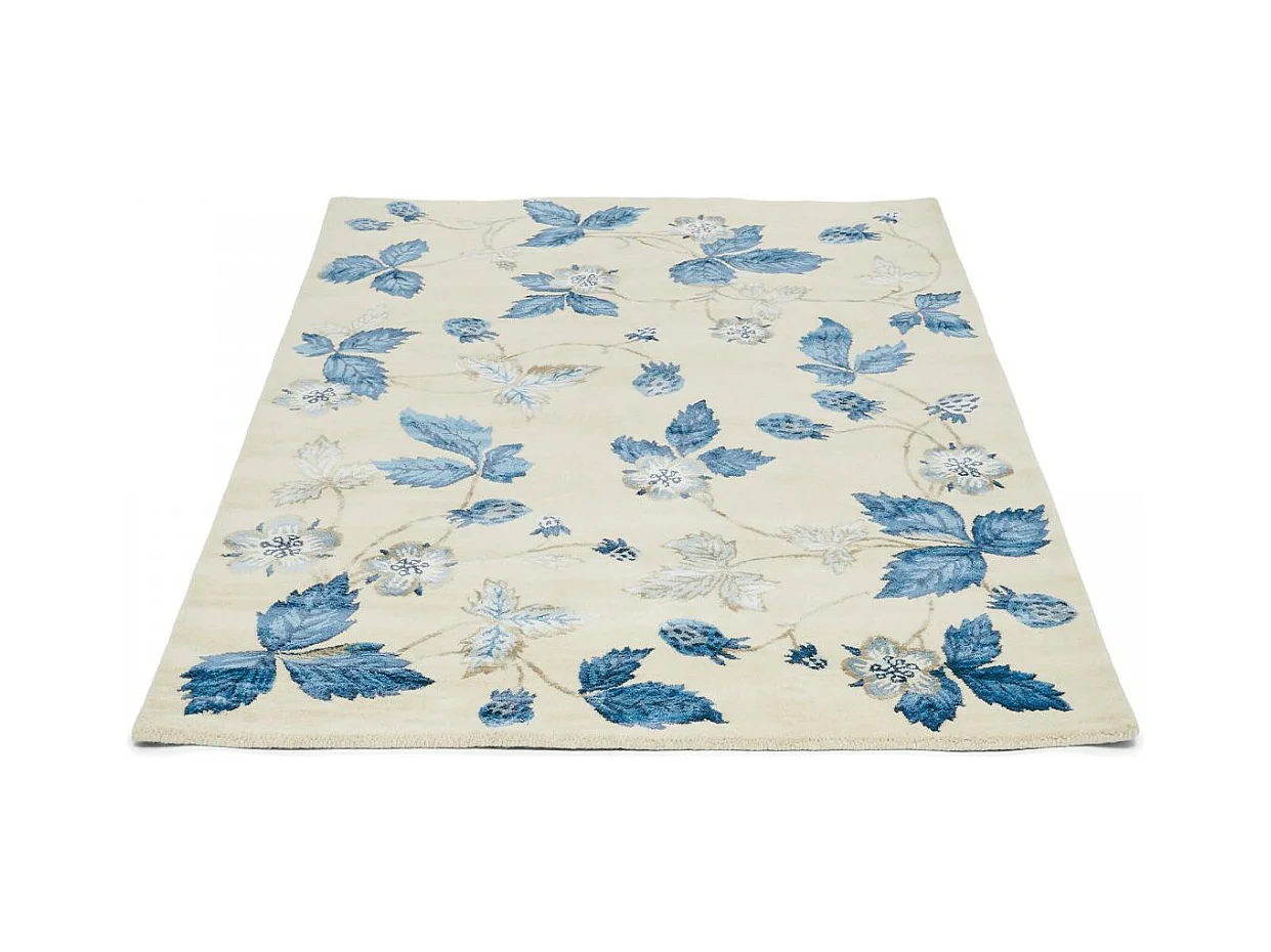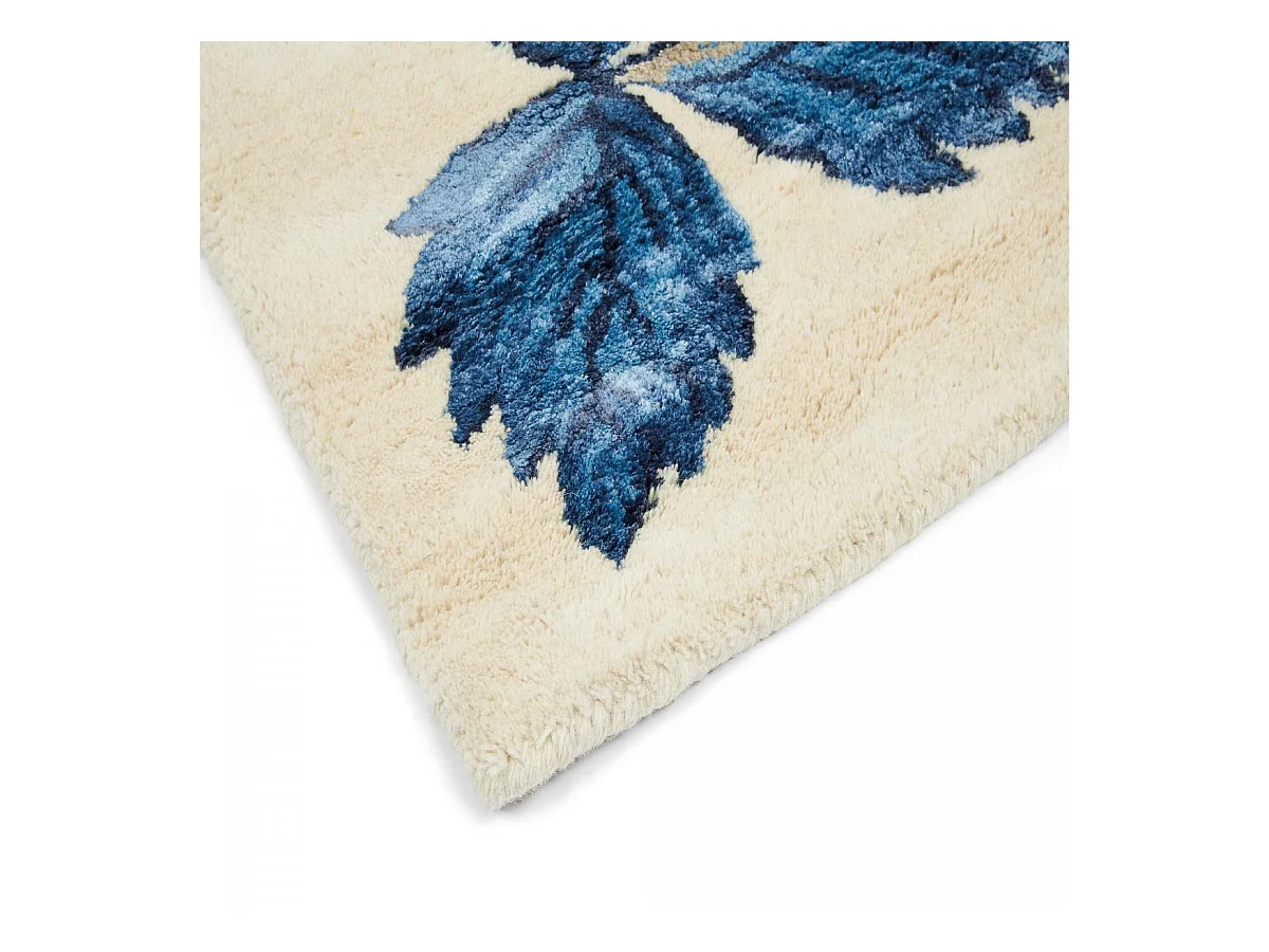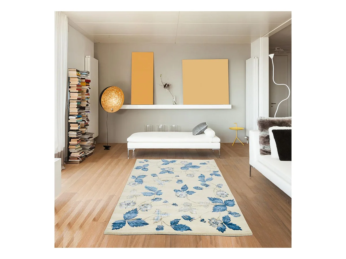 tapis salon 200x280 fait à la main en laine crème rectangle motif floral