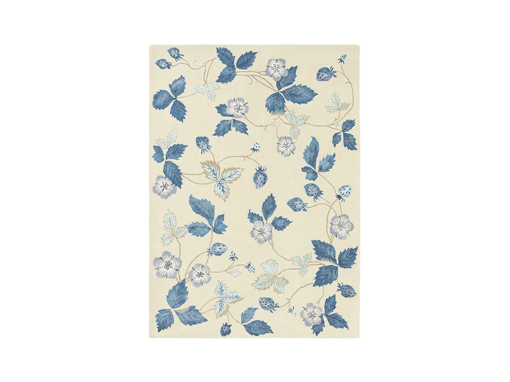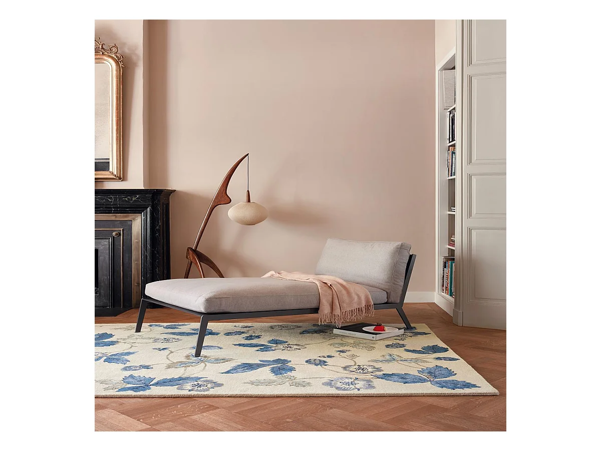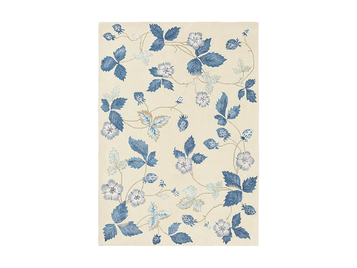 tapis salon 200x280 fait à la main en laine crème rectangle motif floral