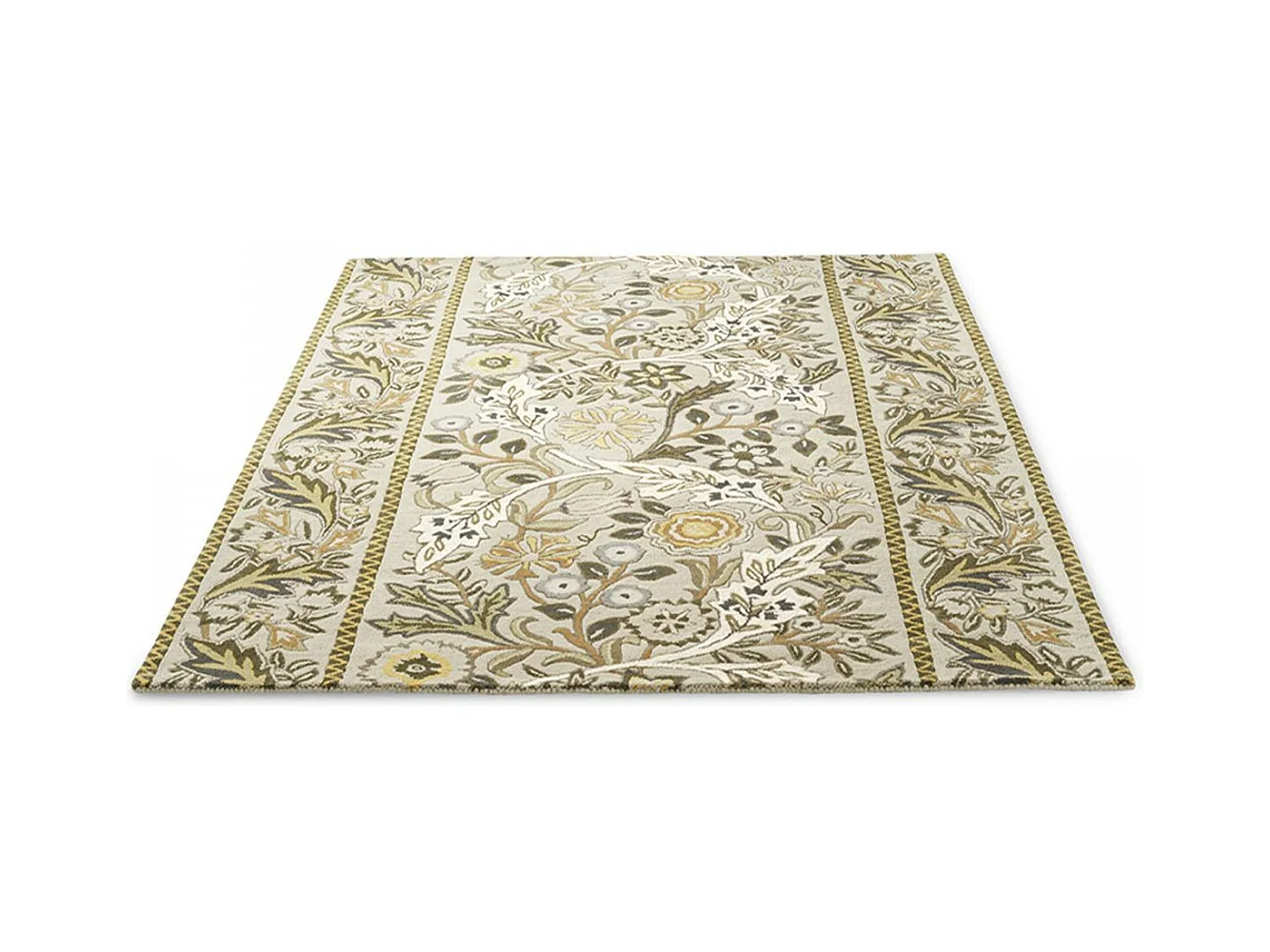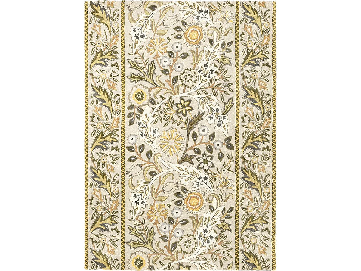 tapis salle à manger 250x350 fait à la main en laine beige et jaune moutarde