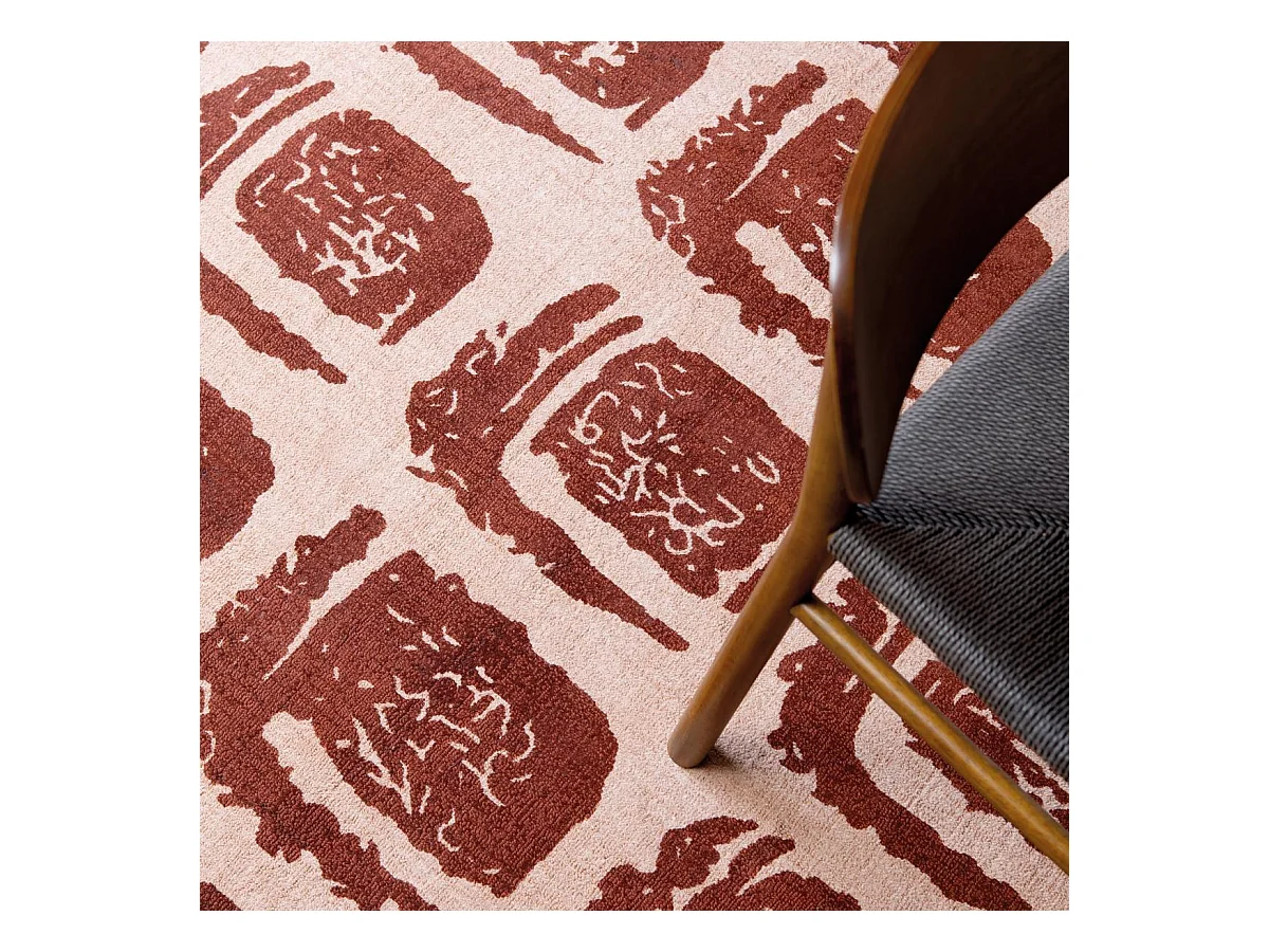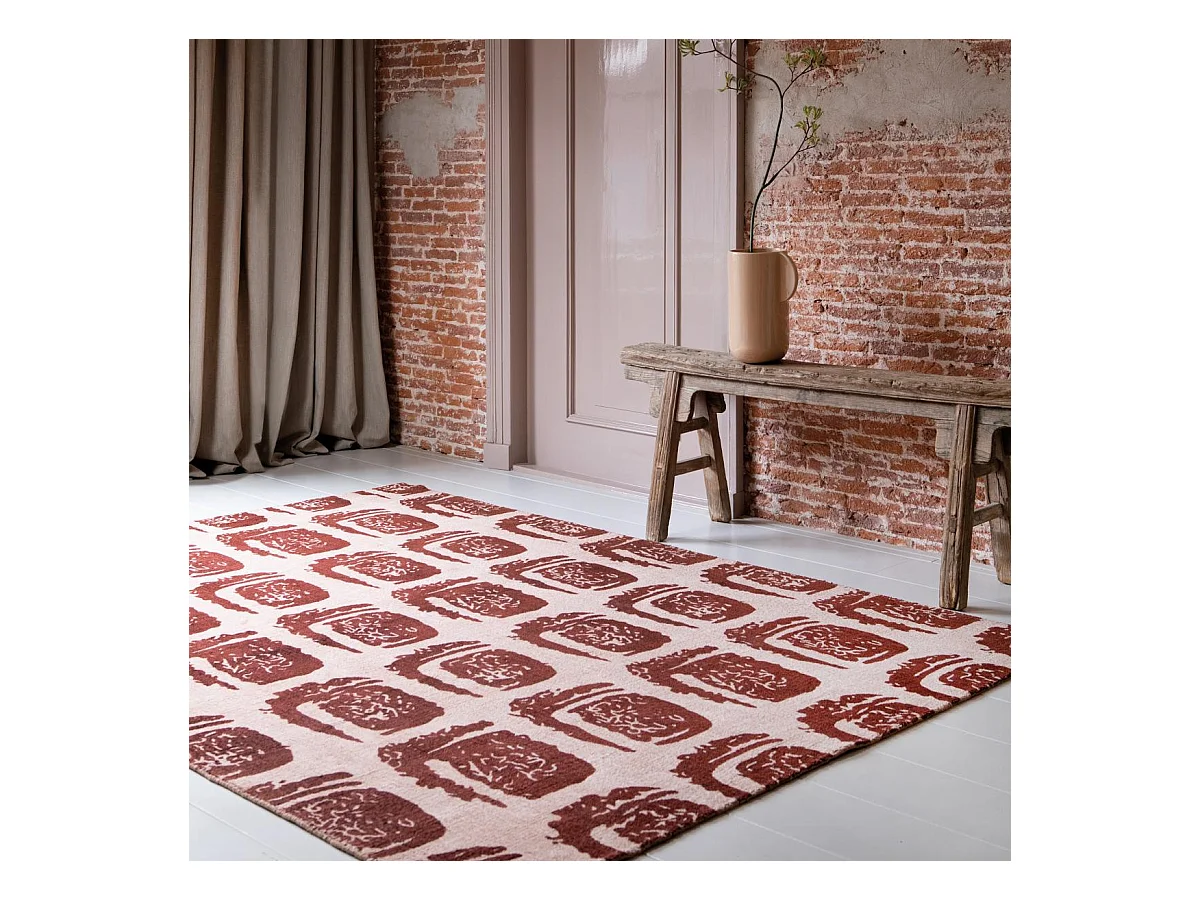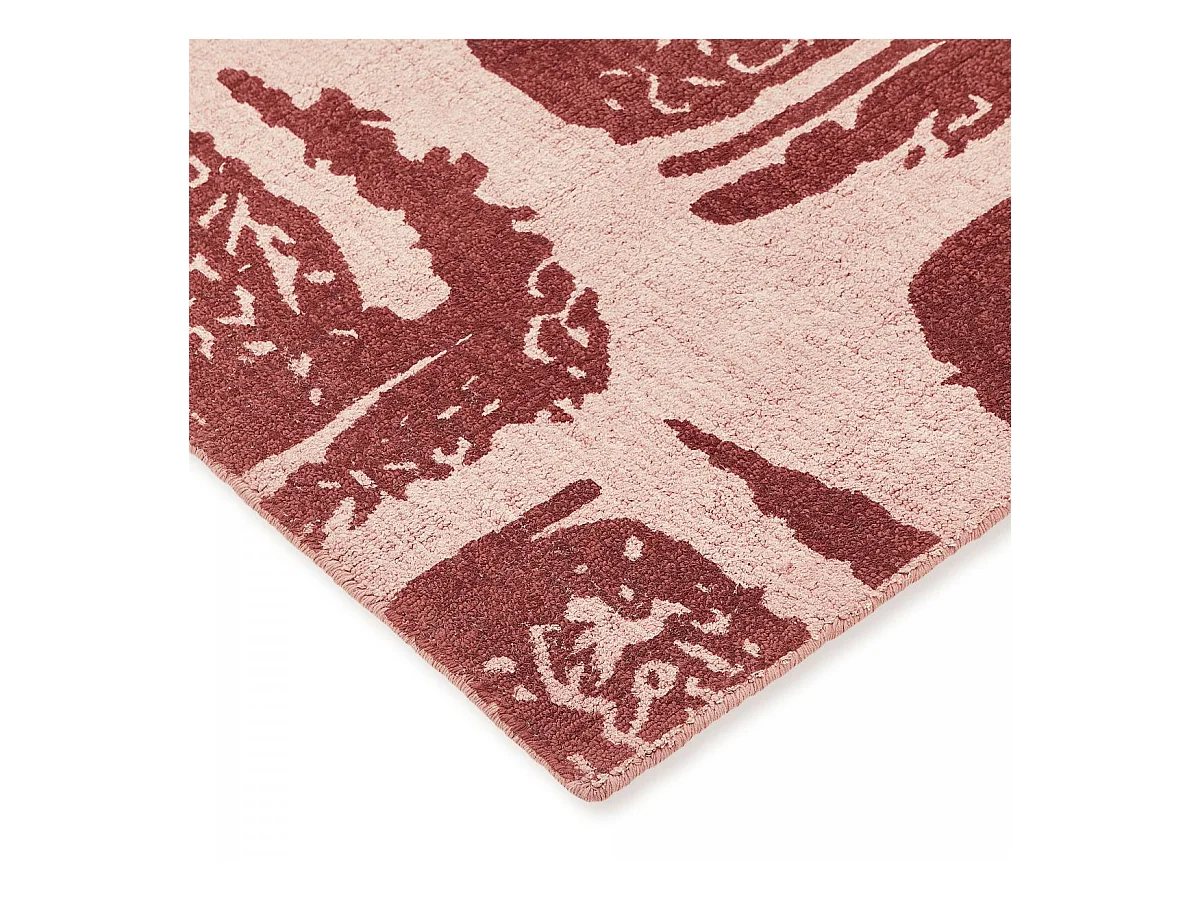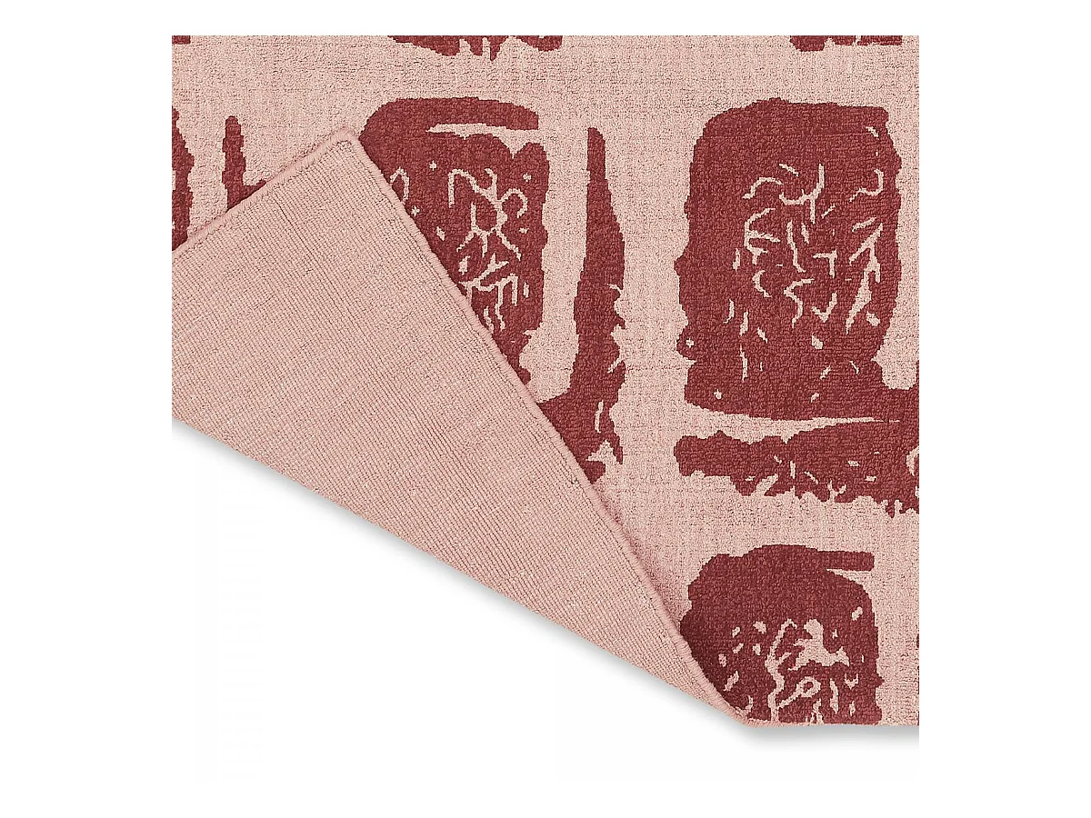 tapis entrée 140x200 fait à la main en coton rouge rectangle motif abstrait
