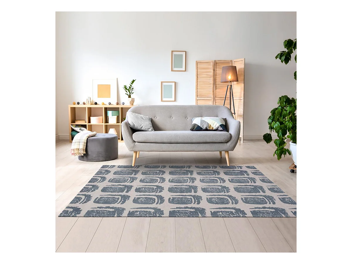 tapis grand salon 250x350 fait à la main en coton gris et crème