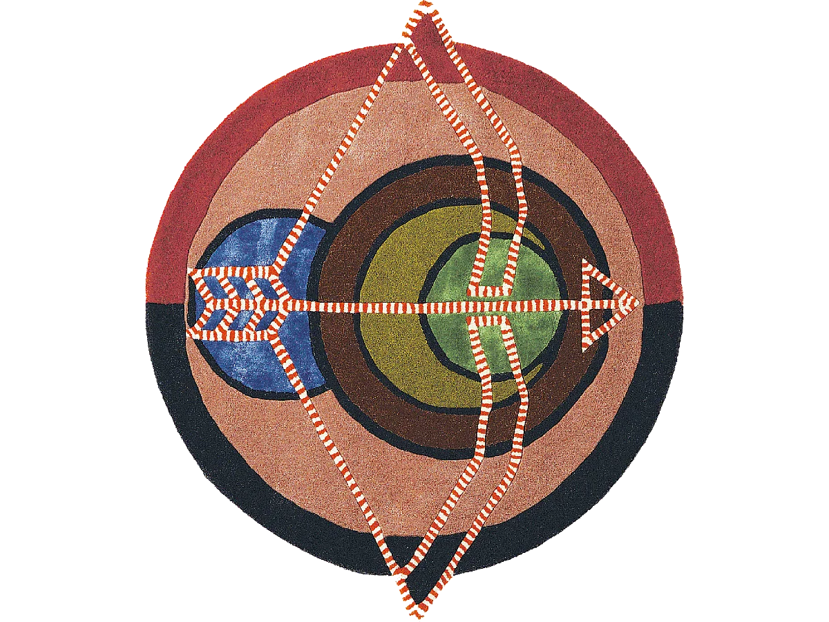 tapis entrée 100x100 fait à la main en laine multicolore motif fresque