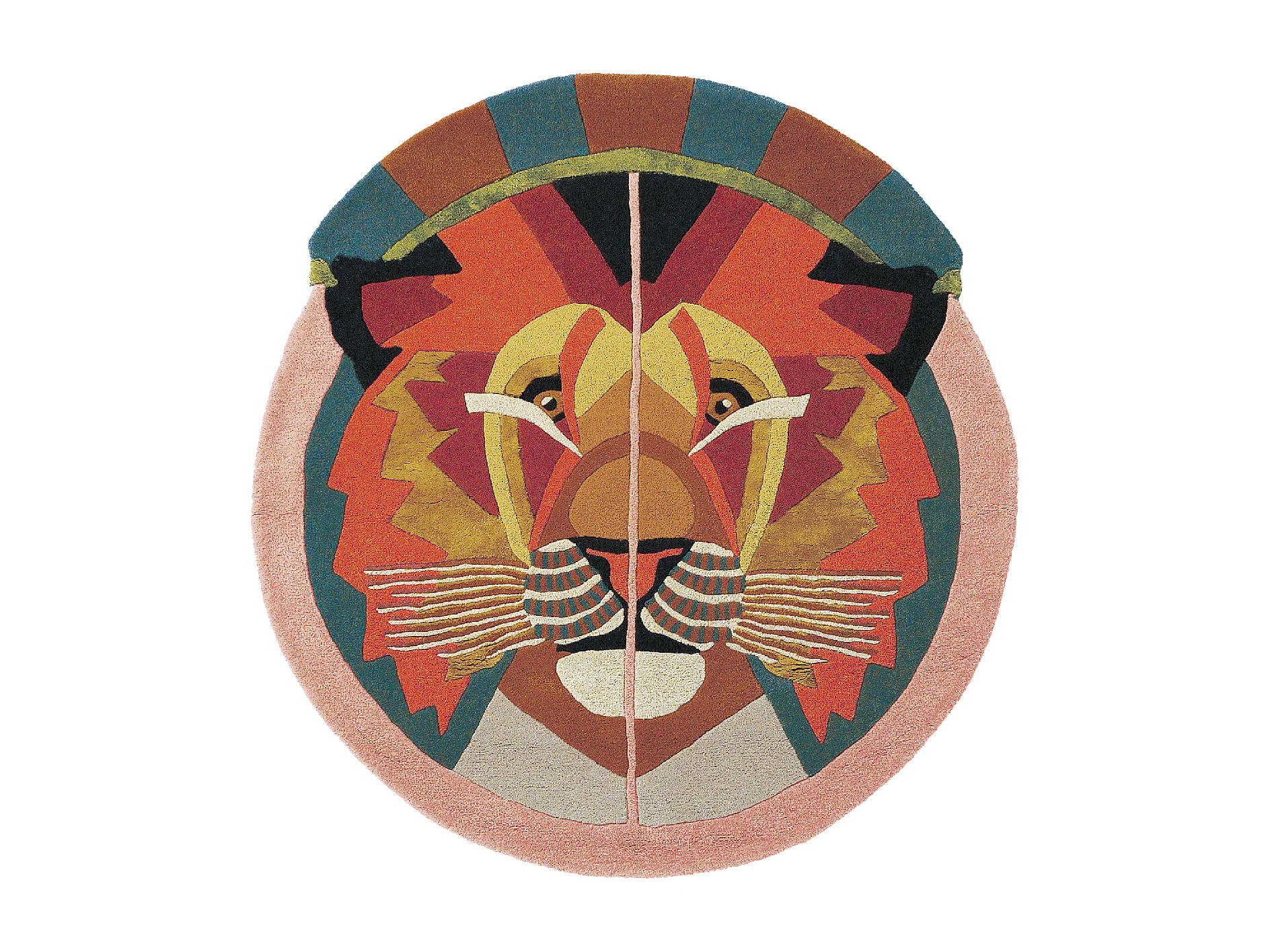 tapis entrée 100x100 fait à la main en laine multicolore motif fresque