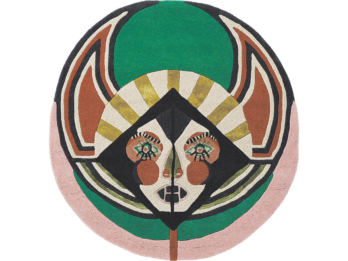 tapis entrée 100x100 fait à la main en laine multicolore motif fresque