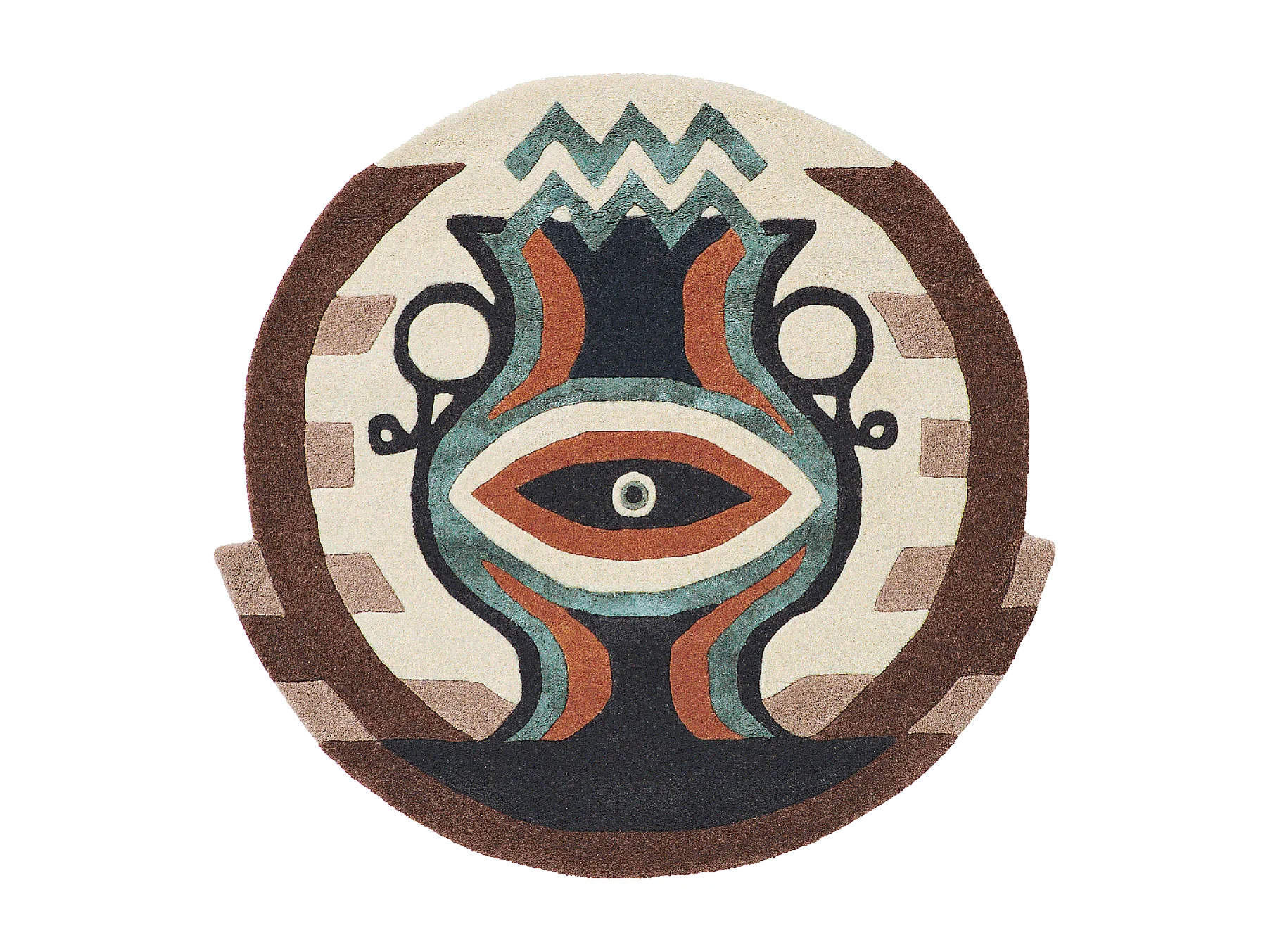 tapis open space 200x200 fait à la main en laine multicolore motif fresque