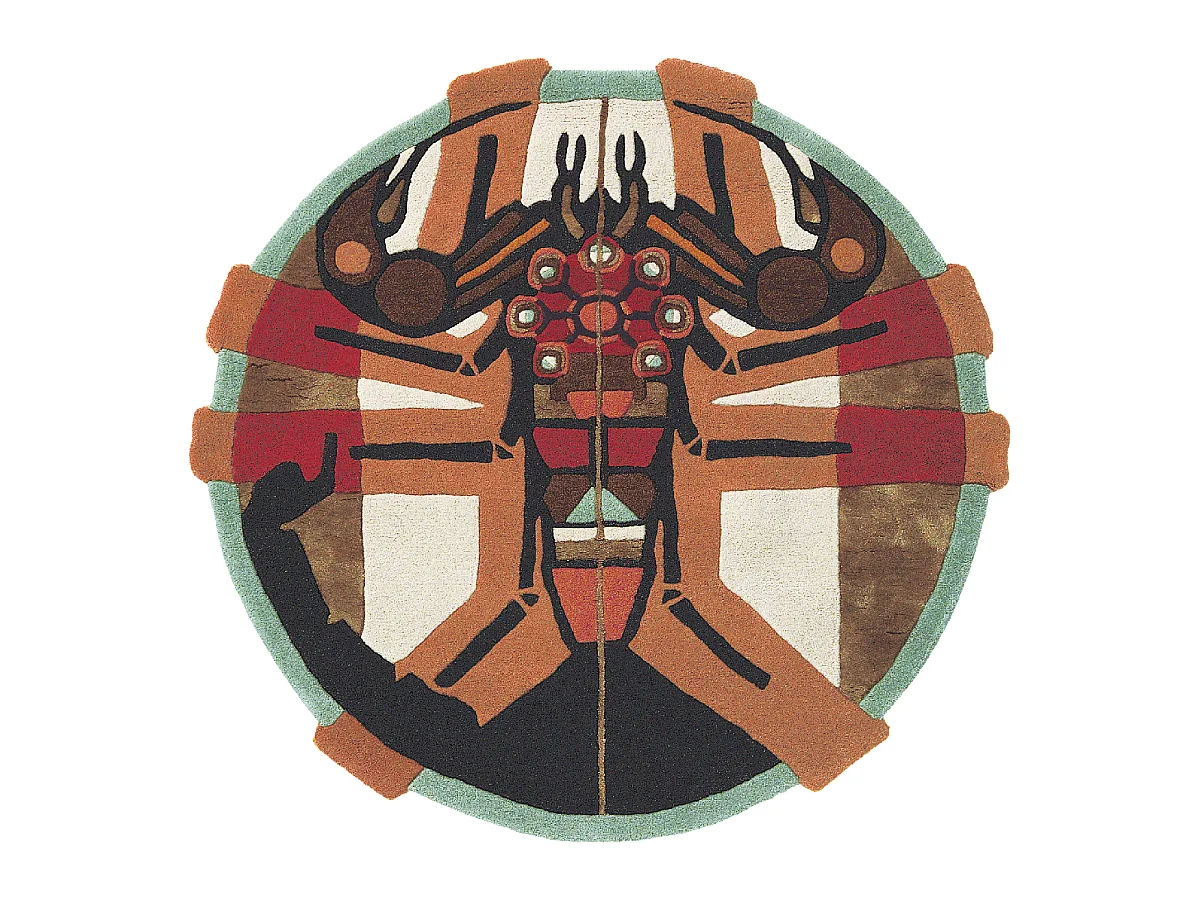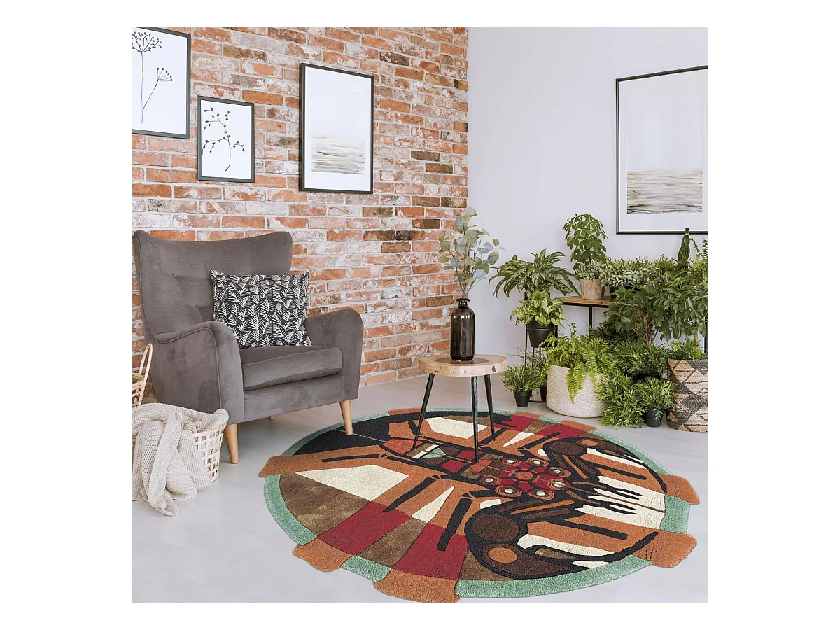 tapis open space 200x200 fait à la main en laine multicolore motif fresque