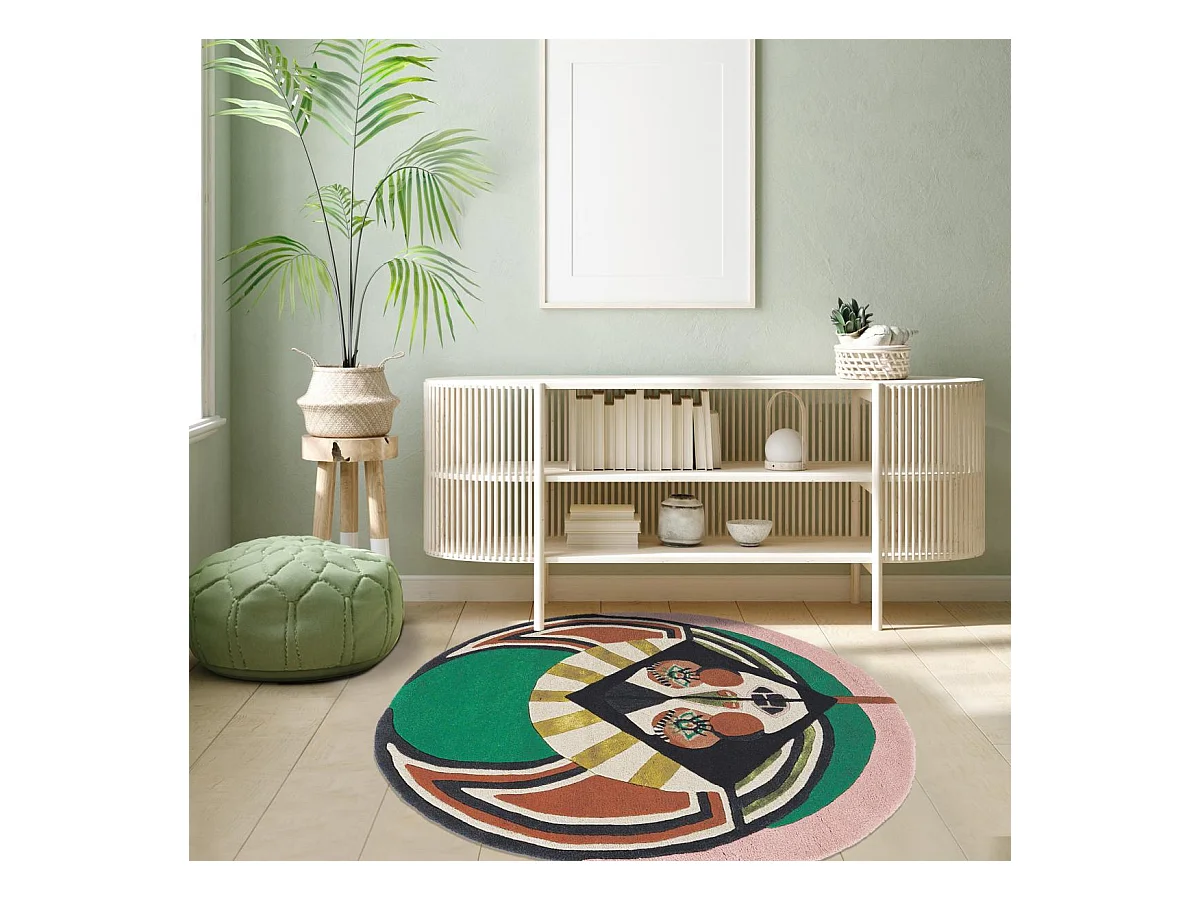 tapis open space 200x200 fait à la main en laine multicolore motif fresque