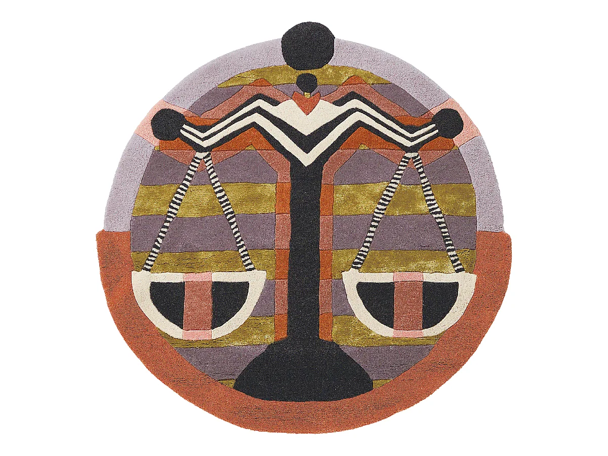 tapis open space 200x200 fait à la main en laine multicolore motif fresque