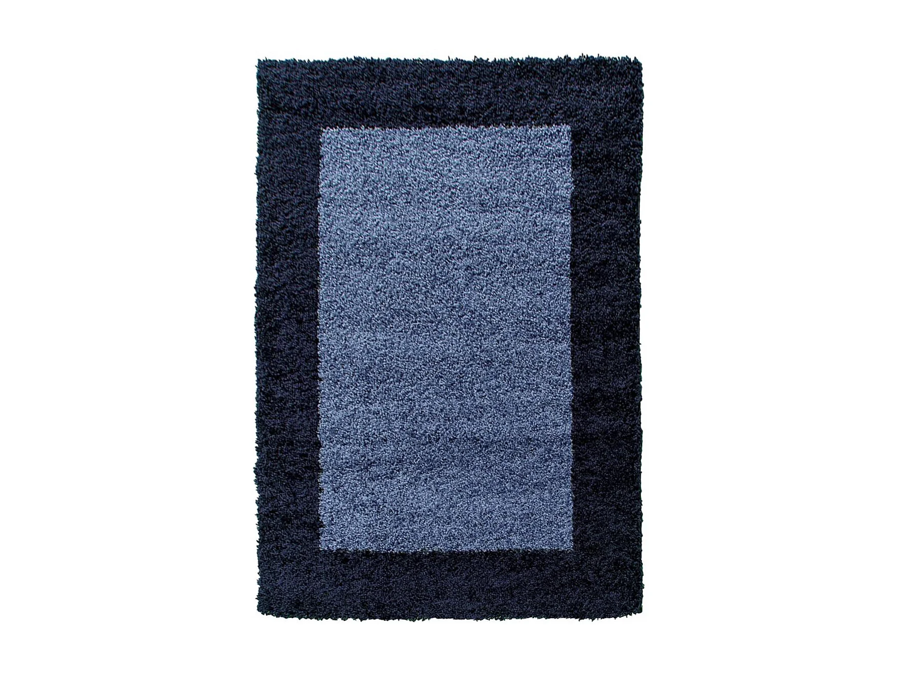 Tapis poils longs shaggy 100x200 rectangle tissé bleu et bleu foncé