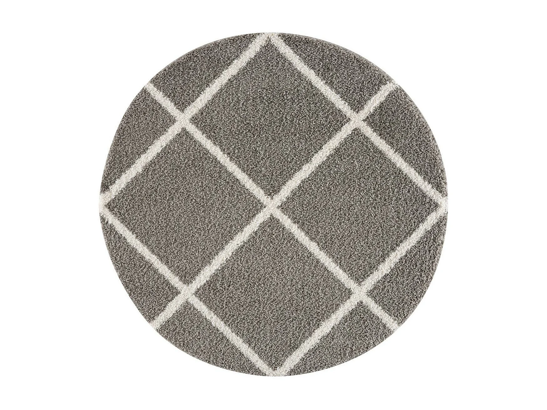 Tapis longs poils shaggy Ø120cm rond tissé gris motif scandinave SG MADRAG