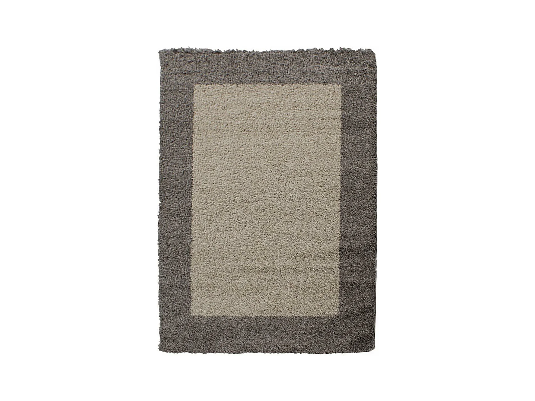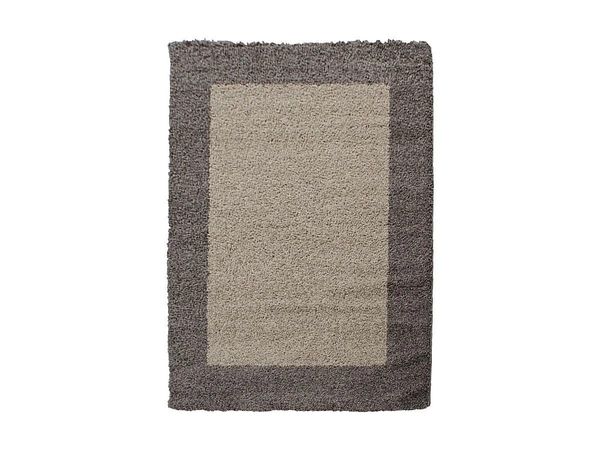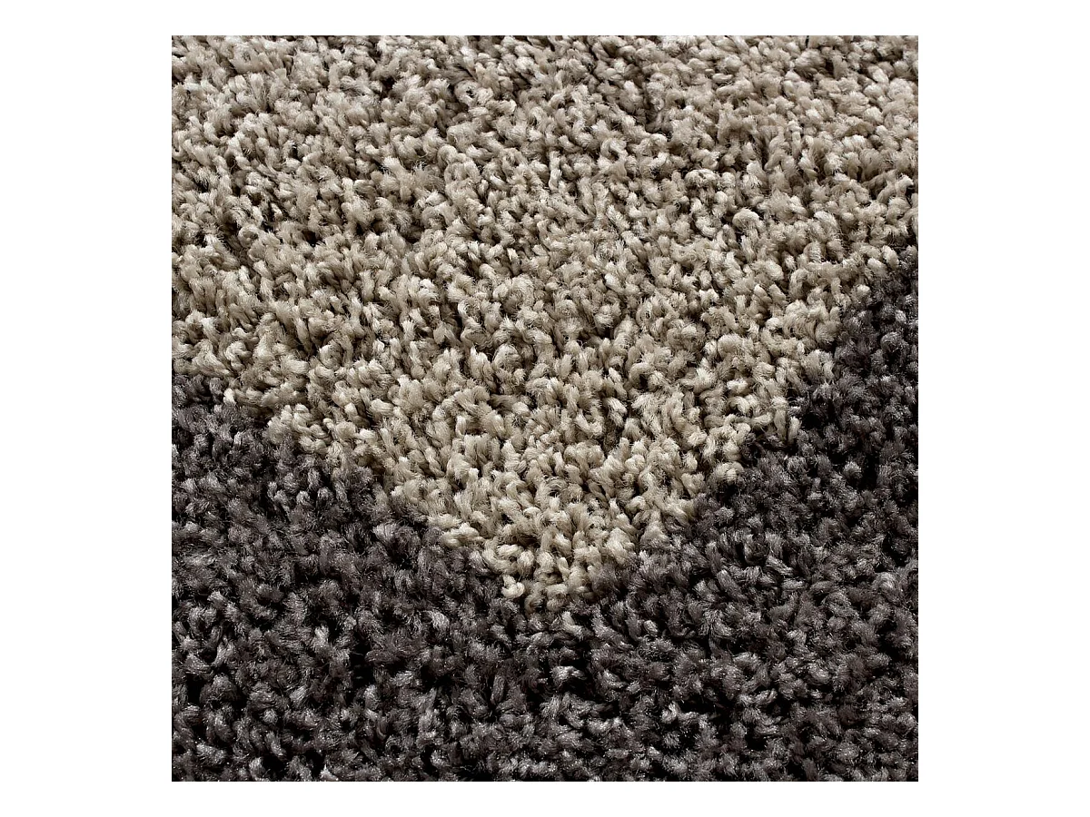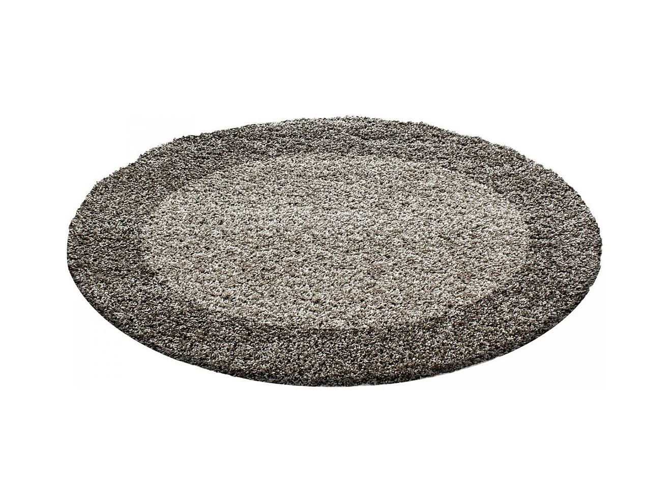 Tapis poils longs shaggy Ø120cm rond tissé beige et taupe motif simple BORDURE