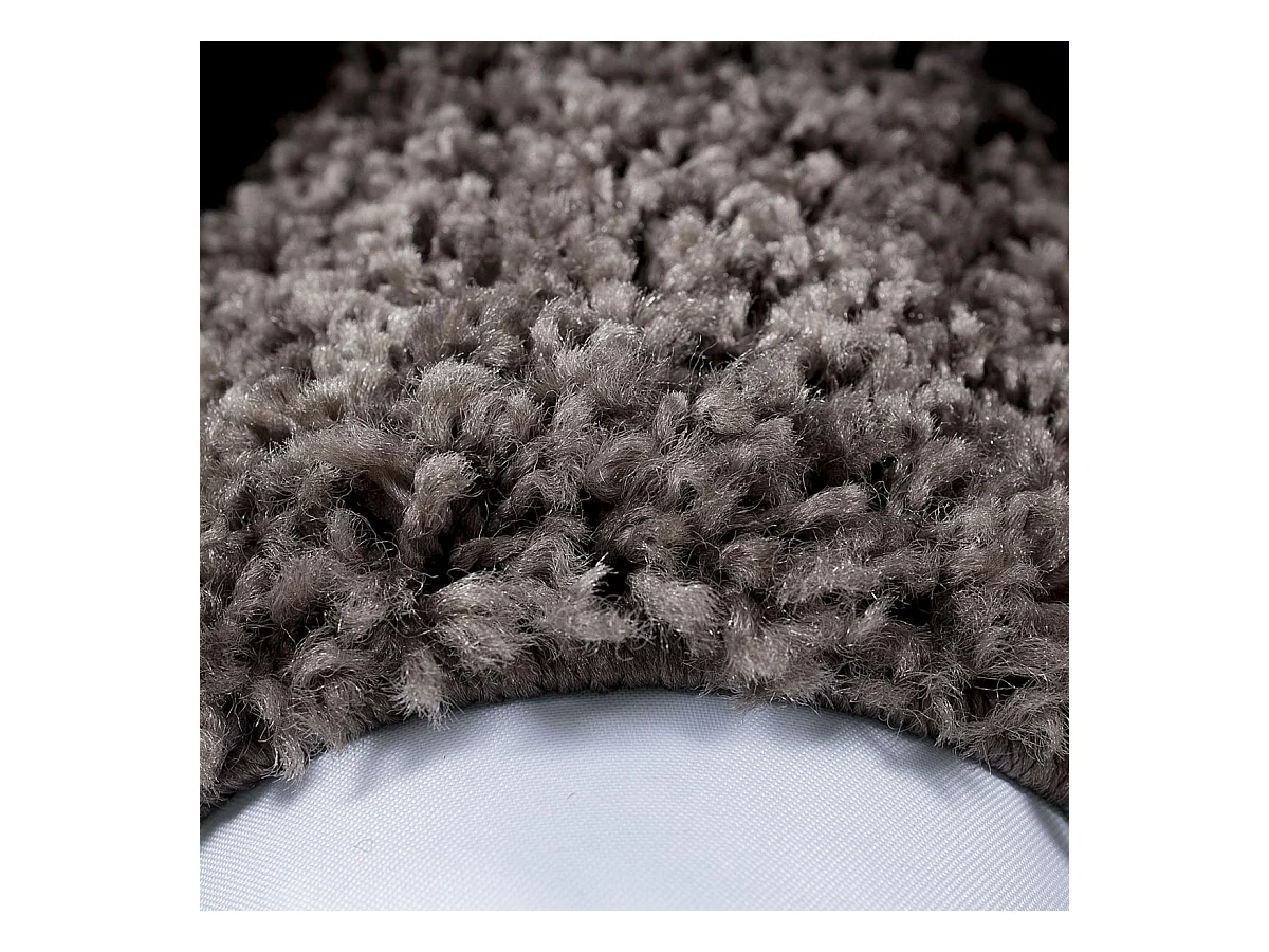 Tapis poils longs shaggy Ø120cm rond tissé marron motif uni UNI L