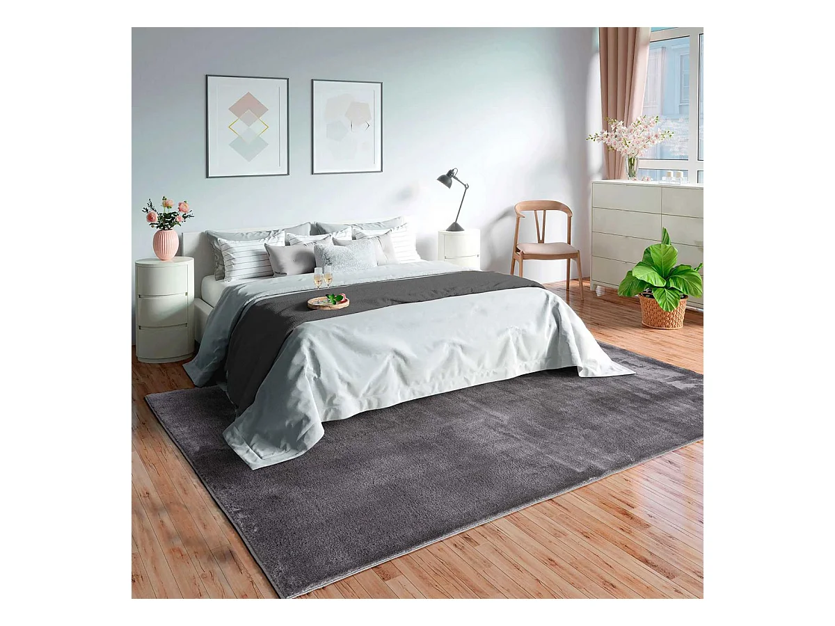 Tapis chambre LYN10 LAVABLE 120x170 soyeux et doux, tapis anthracite uni à l'aspect Shaggy