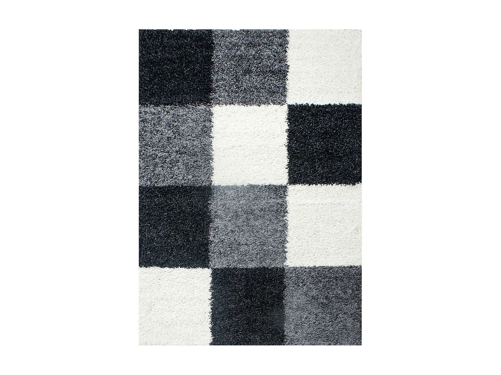 Tapis poils longs shaggy 120x170 rectangle tissé gris et noir motif damier