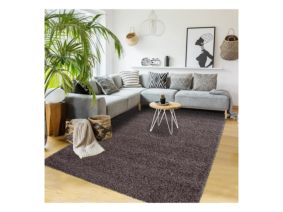 Tapis poils longs shaggy 120x170 rectangle tissé taupe motif uni UNI L