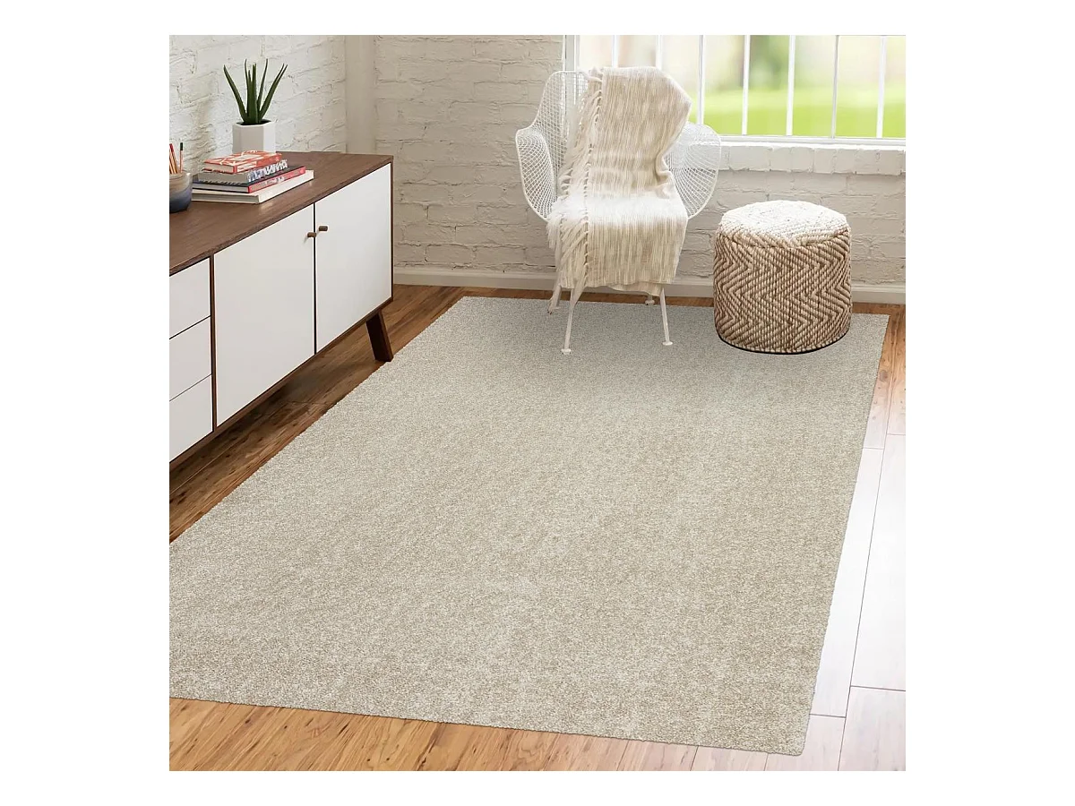 Tapis shaggy 120x170 rectangle tissé beige motif uni TAPITOP