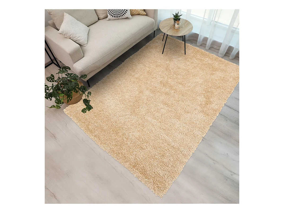 Tapis shaggy 160x230 rectangle fait main beige motif uni GLAMOURA