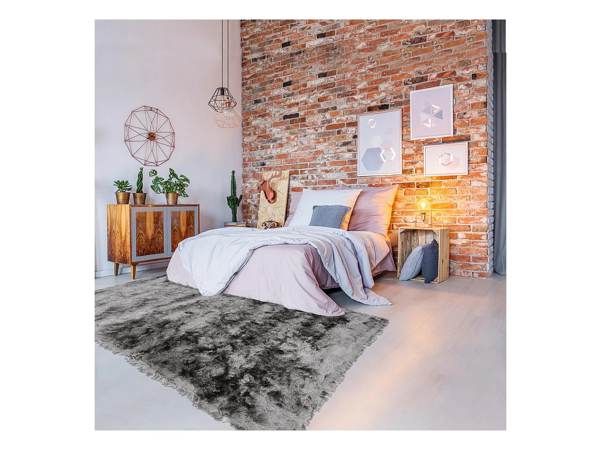 Tapis shaggy 160x230 rectangle fait main gris motif uni SG FIN