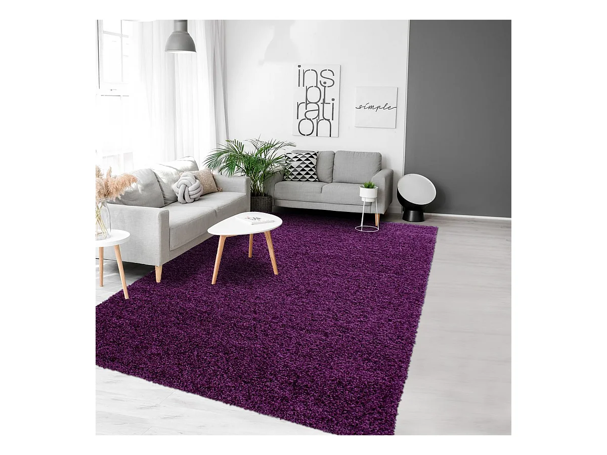 Tapis poils longs shaggy 160x230 rectangle tissé violet motif uni UNI L