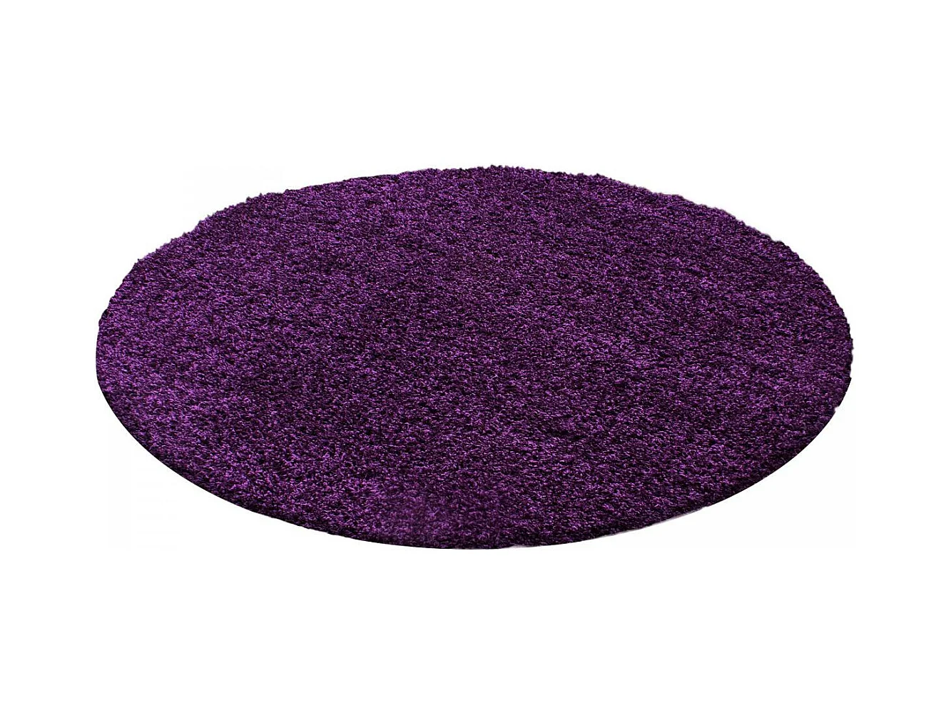 Tapis shaggy Ø140cm rond fait main violet motif uni MALAIDORY