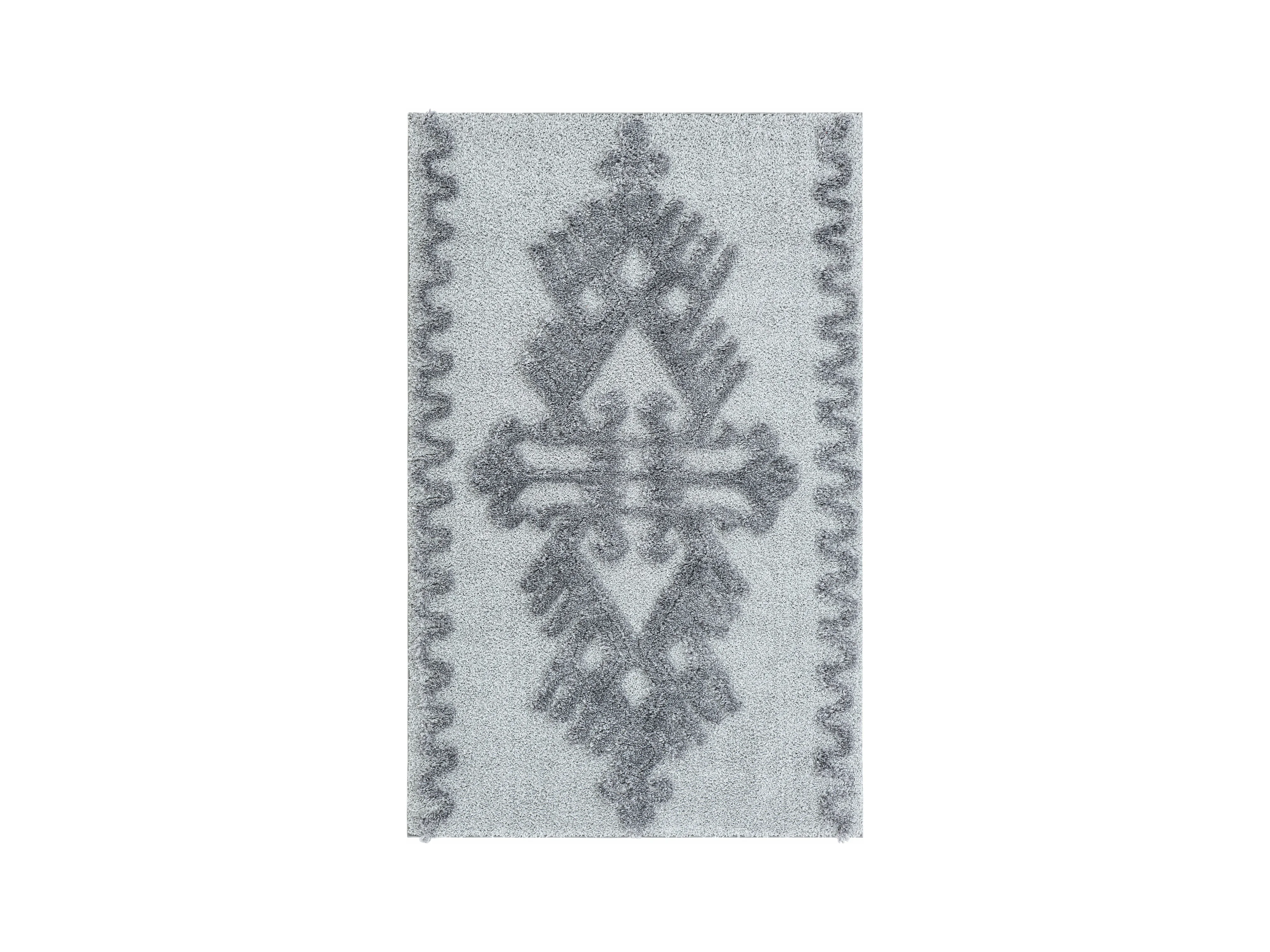 Tapis longs poils shaggy 80x150 rectangle tissé gris et blanc motif scandinave