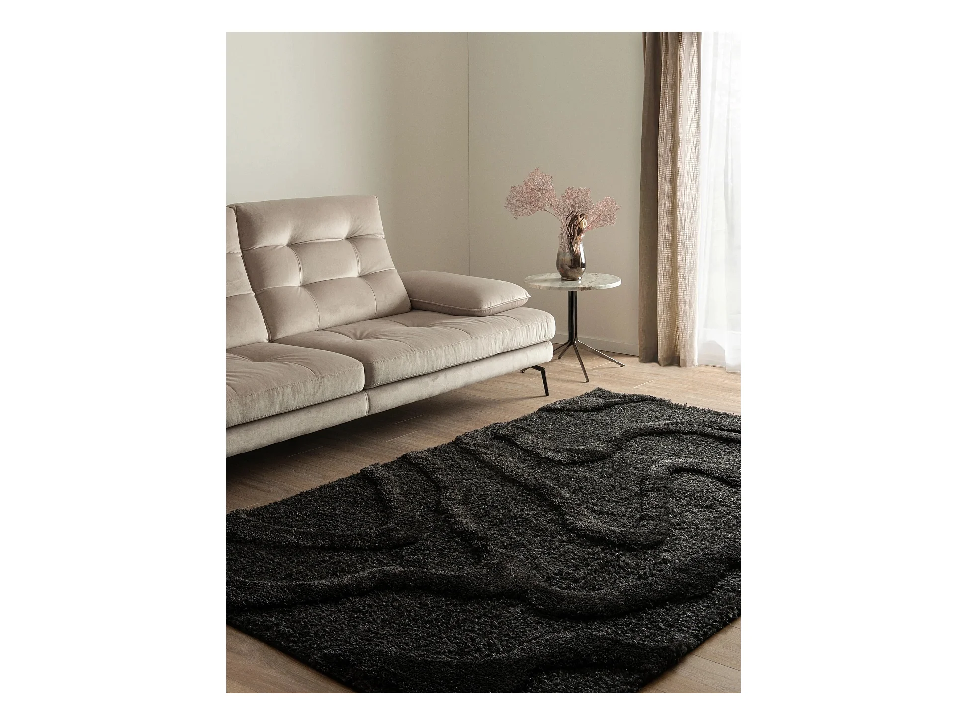 Tapis poils longs shaggy 300x400 rectangle tissé noir motif uni UNI I