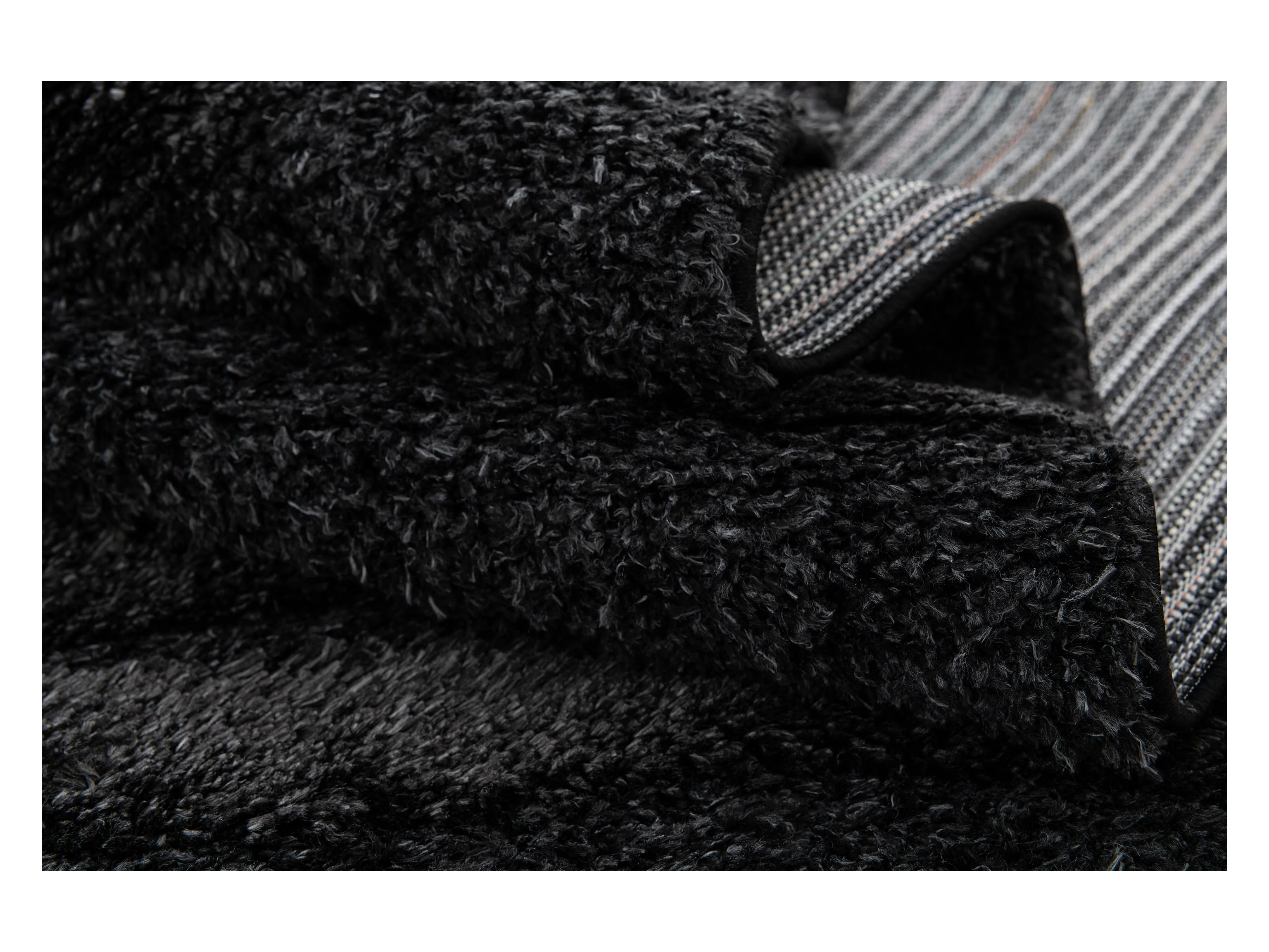 Tapis poils longs shaggy 80x150 rectangle tissé noir motif uni UNI L