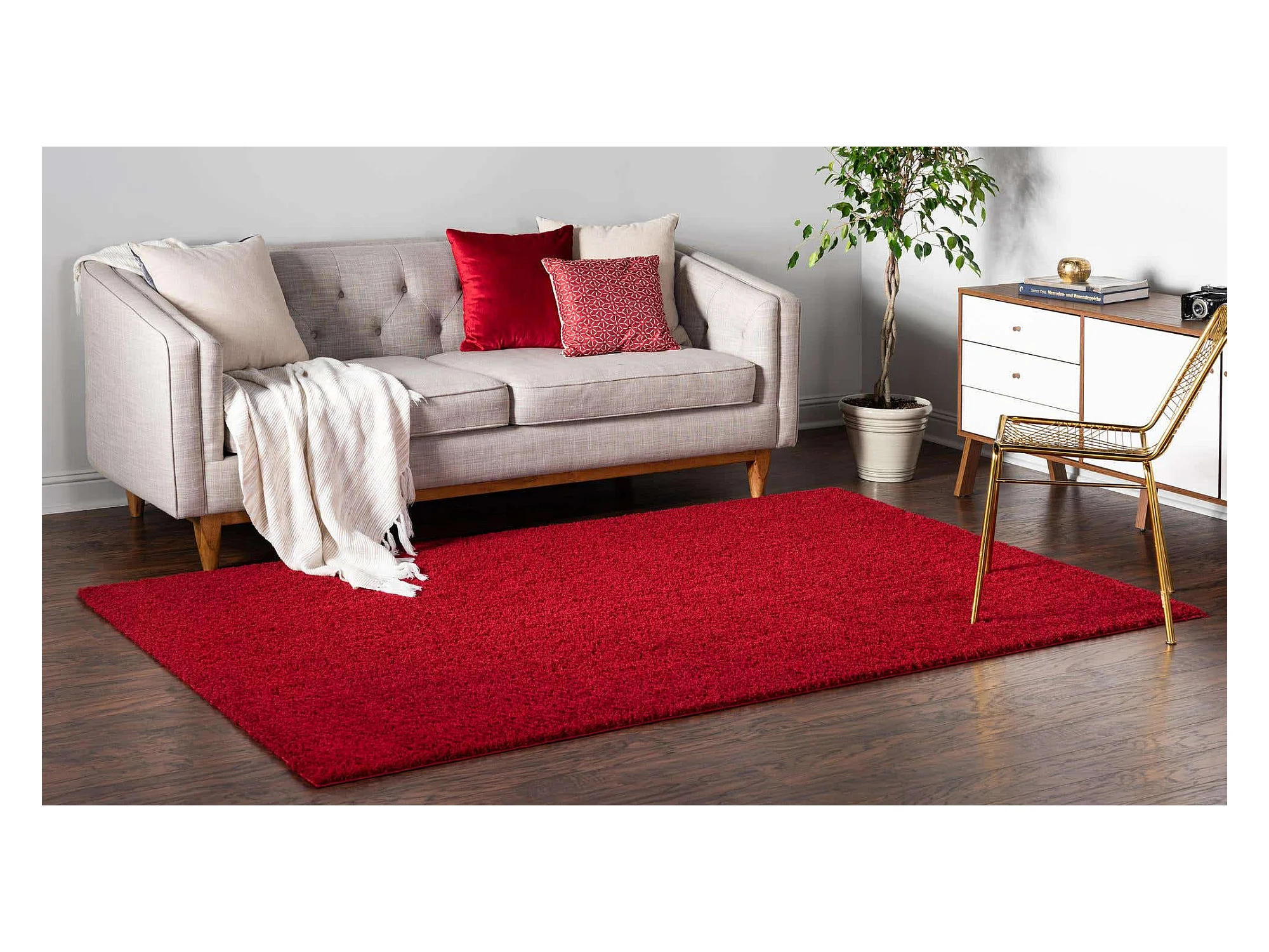 Tapis d'entrée LYN10 LAVABLE 80x150 soyeux et doux, tapis rouge uni à l'aspect : Shaggy