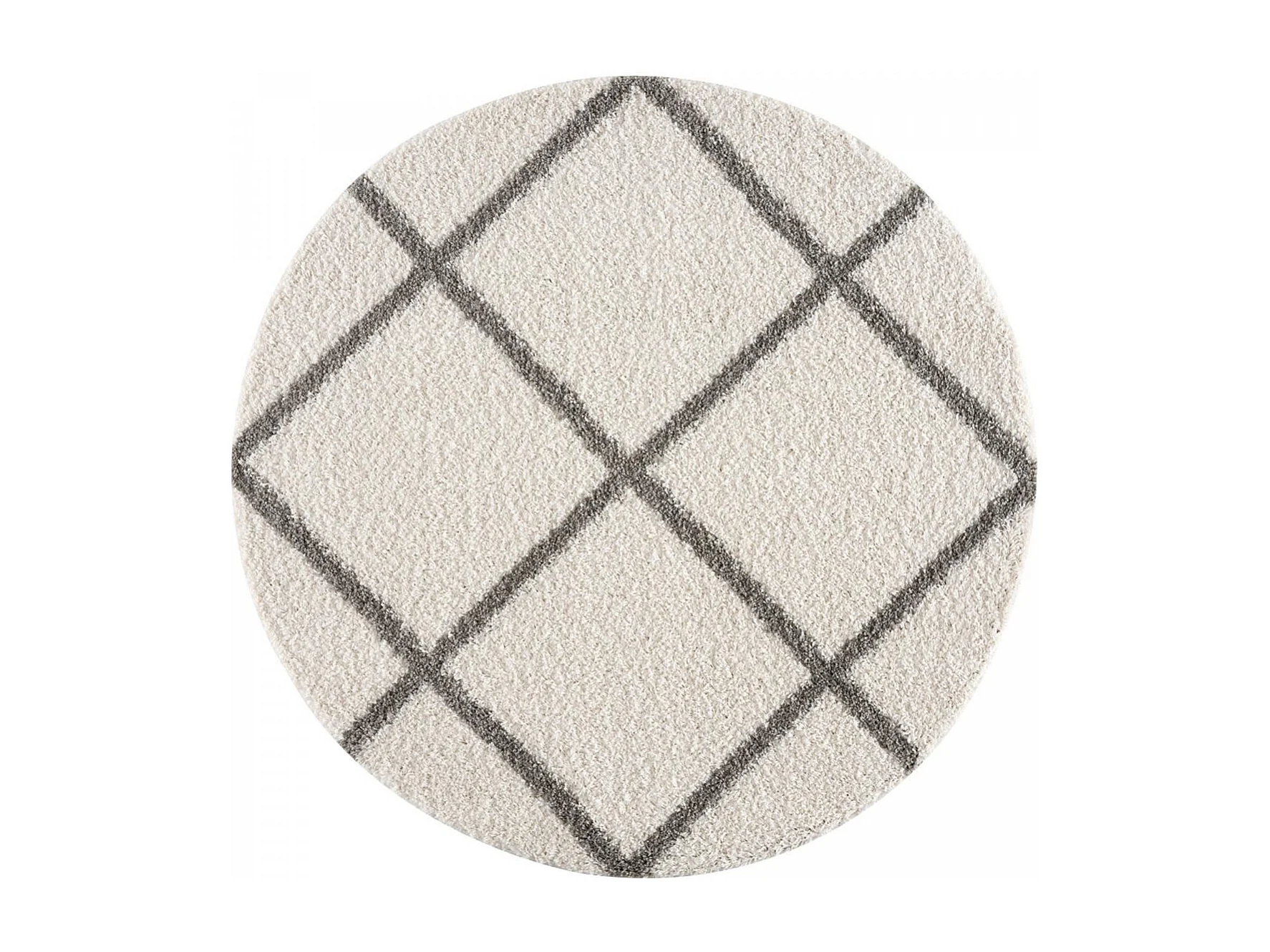 Tapis longs poils shaggy Ø200cm rond tissé crème motif scandinave SG MADRAG