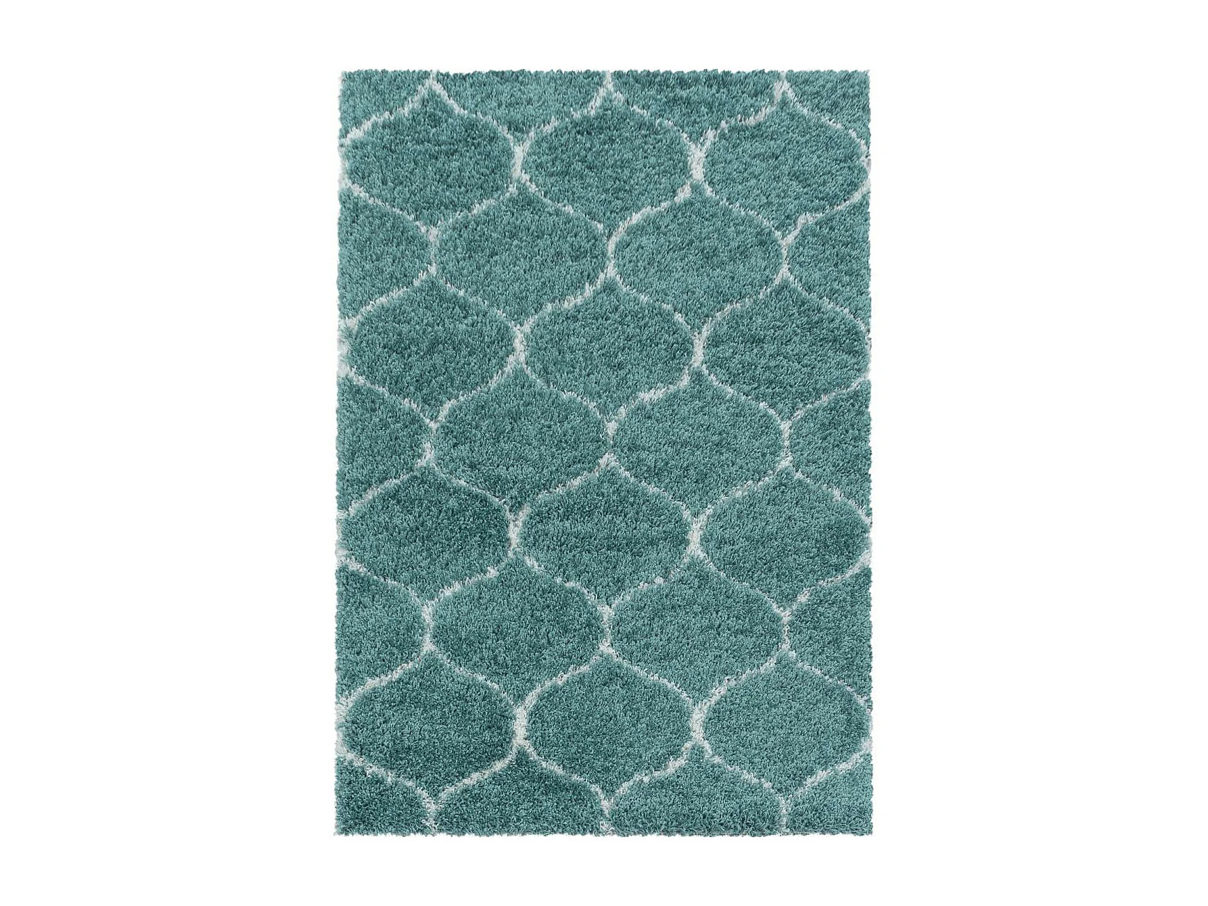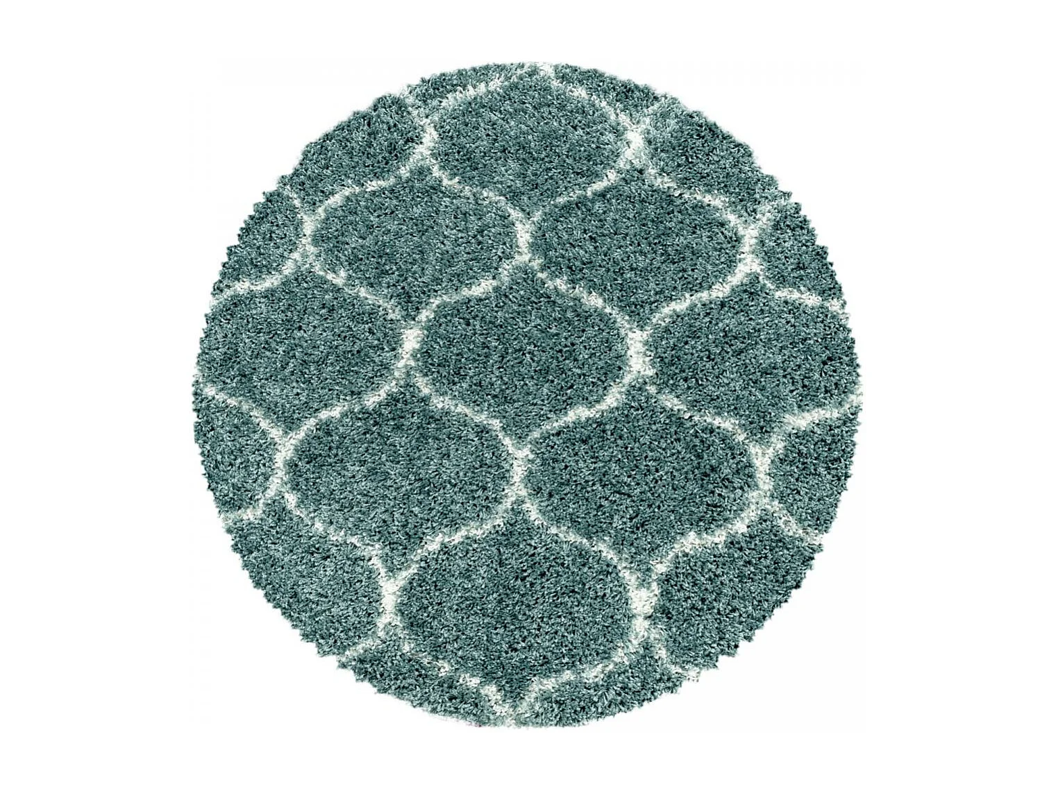 Tapis shaggy Ø200cm rond tissé turquoise et crème motif scandinave SCANDINAV A